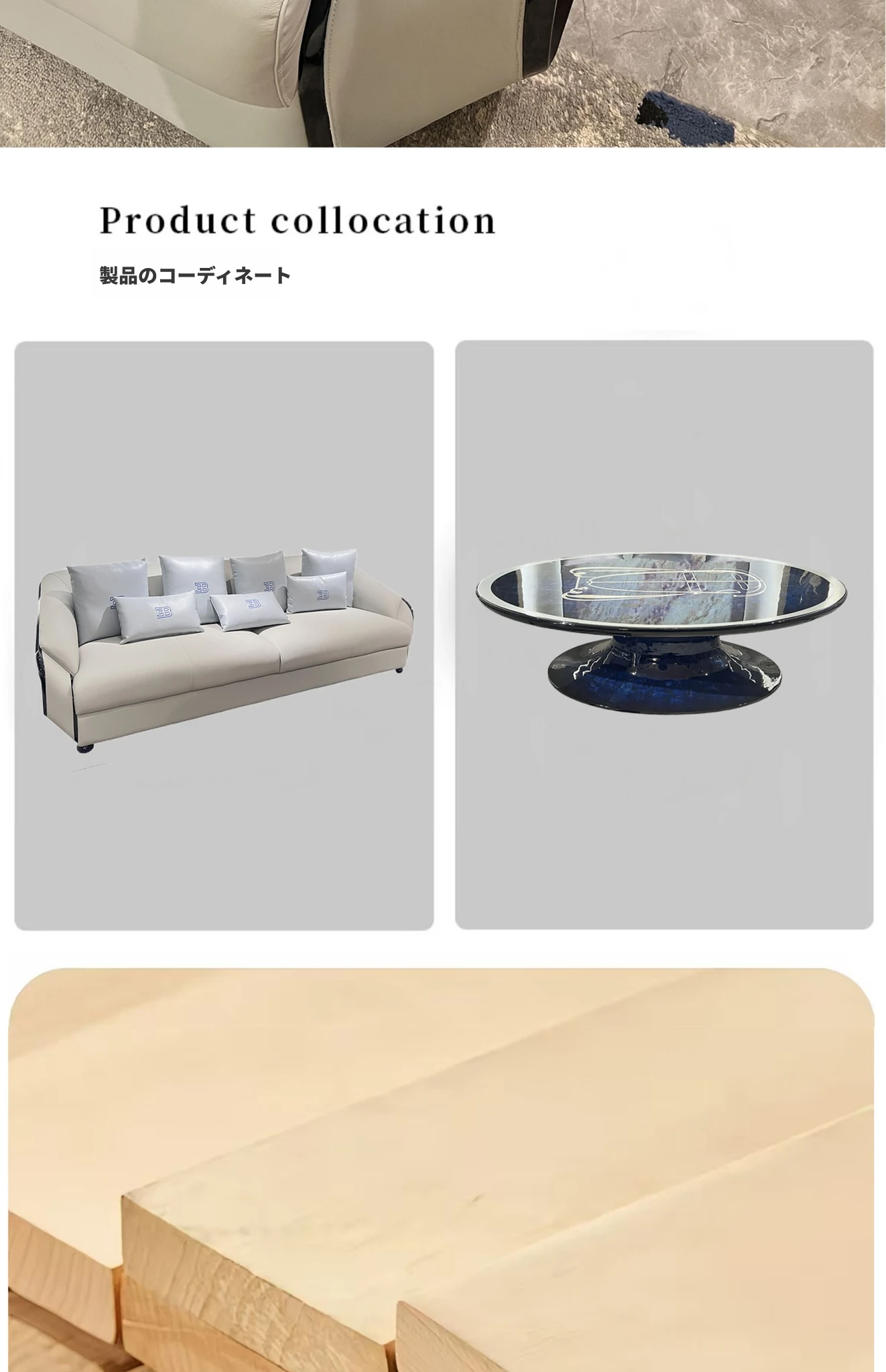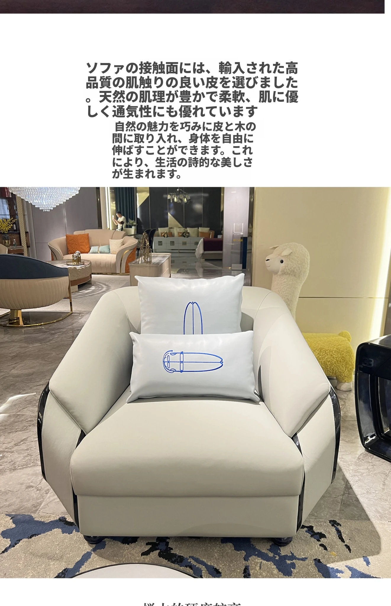 イタリアンブガッティ本革ソファー - ヴィラやリビングルームに最適なモダンなデザイン、軽やかなラグジュアリー感を演出!高品質の無垢材と美しいウレタン塗装仕上げで、どんなお部屋にもぴったりフィットする高級家具です。