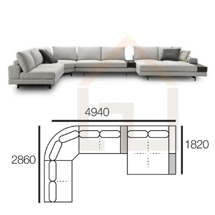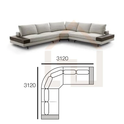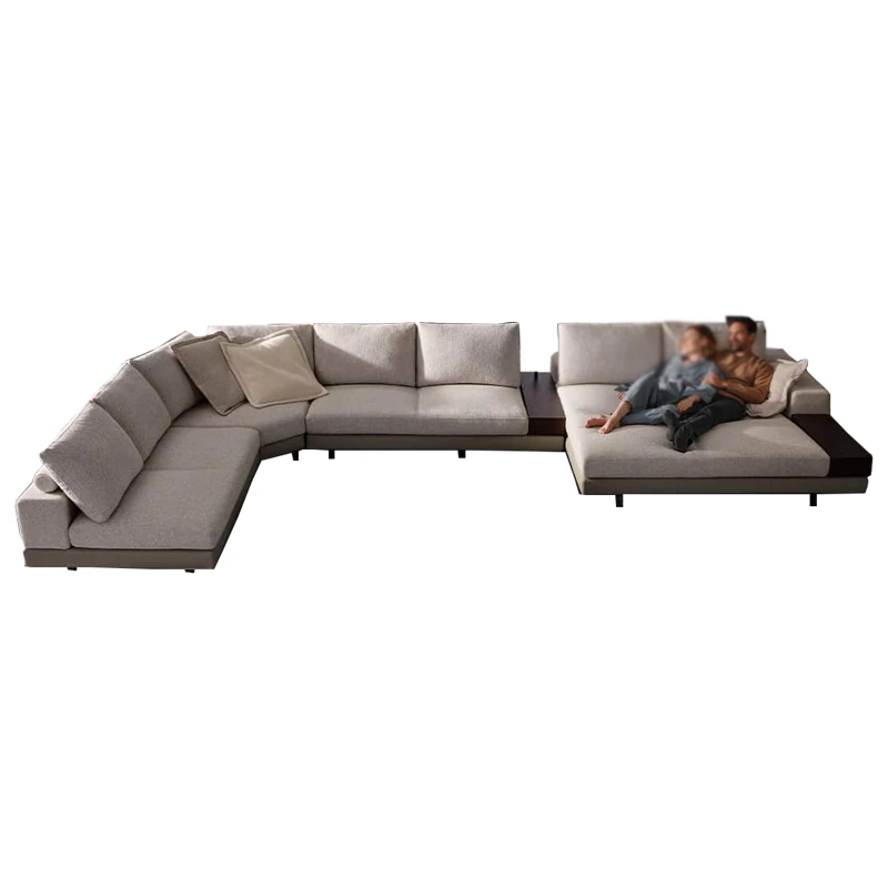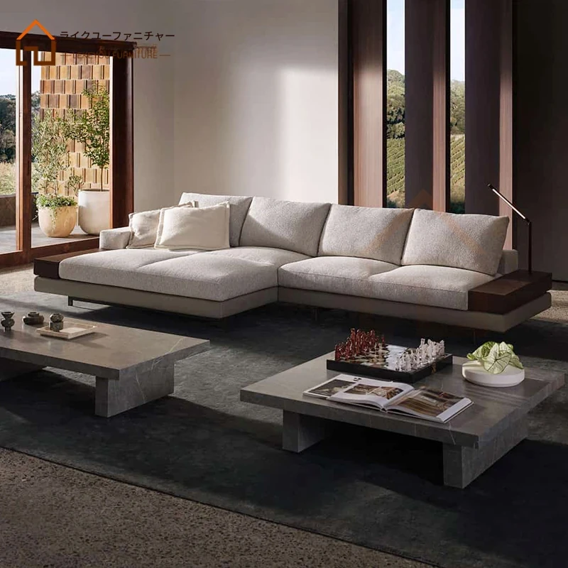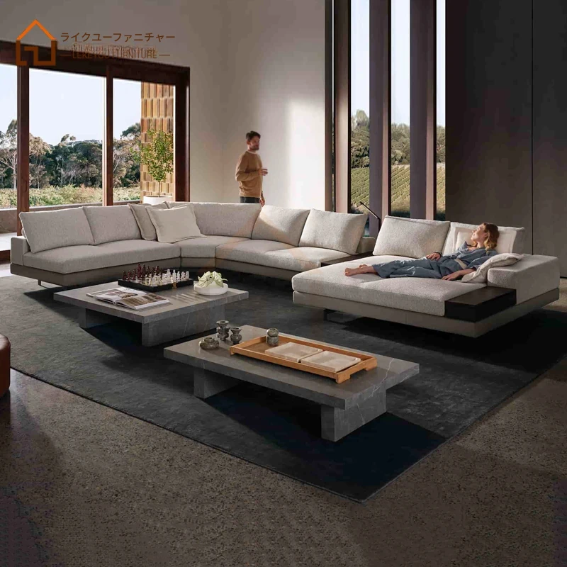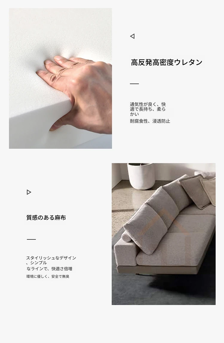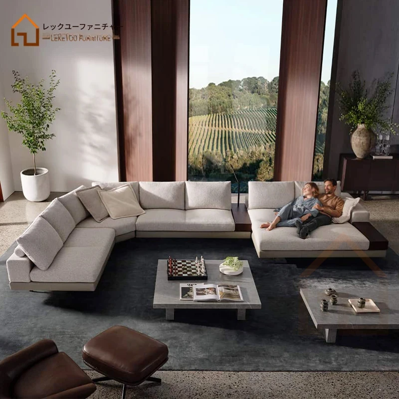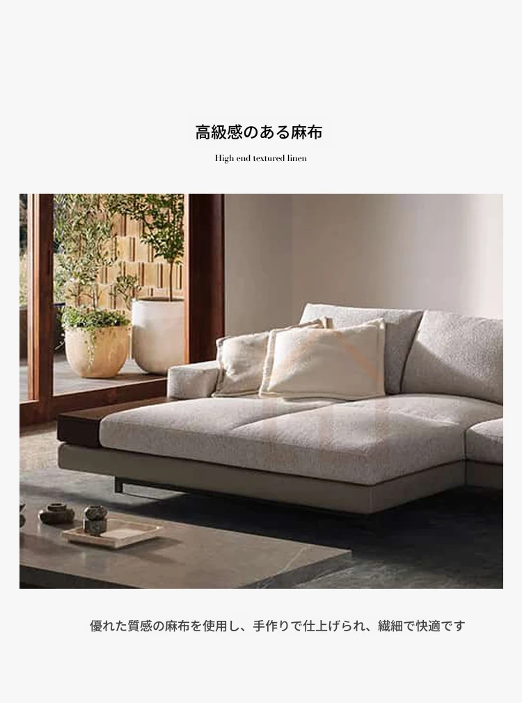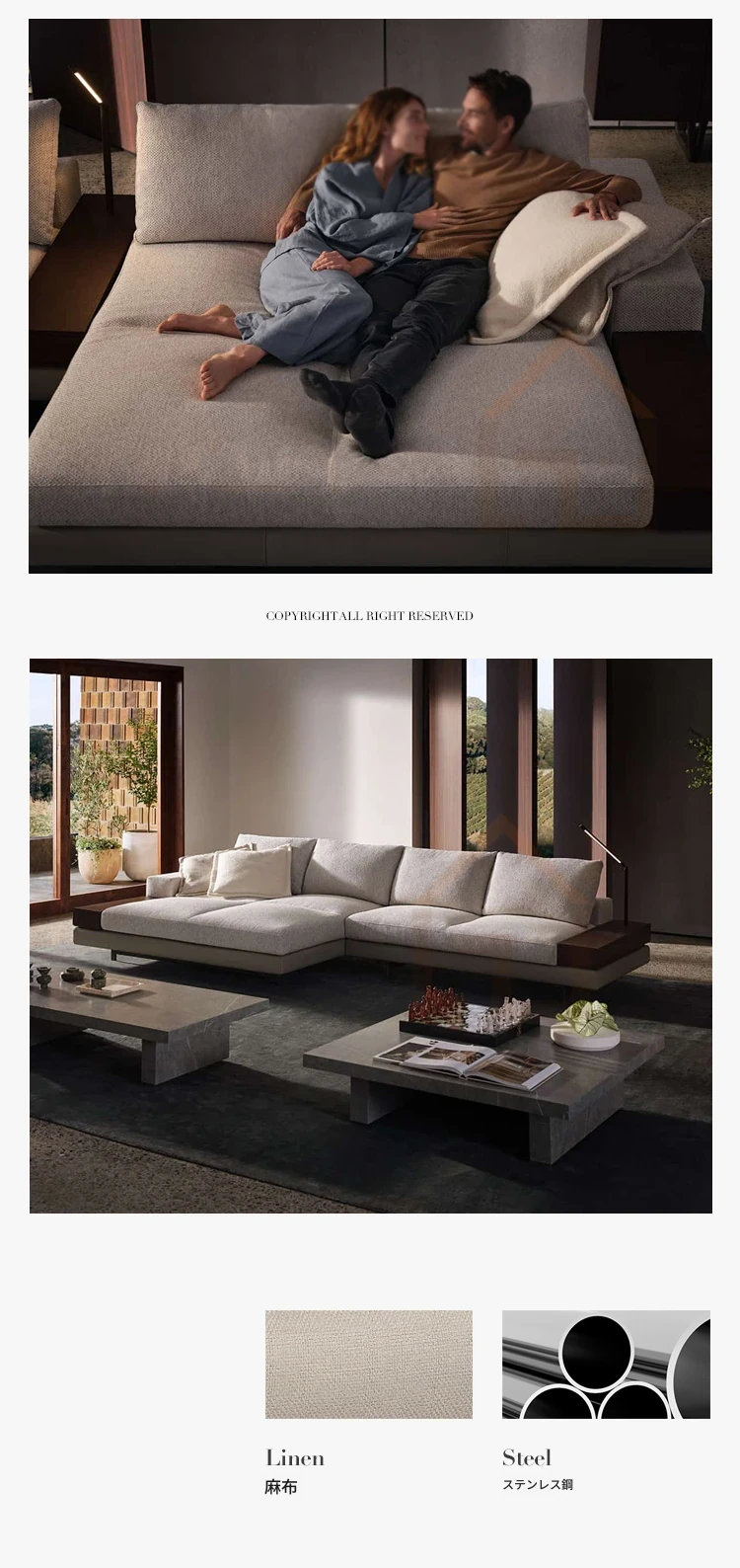 イタリアンKatoミニマルデザイン本革ソファ - デザイナーズラグジュアリーリビングルーム用、コットンリネンのモダンカウチとコーナー付きの美しいコンビネーションソファ。スタイリッシュな空間を演出!