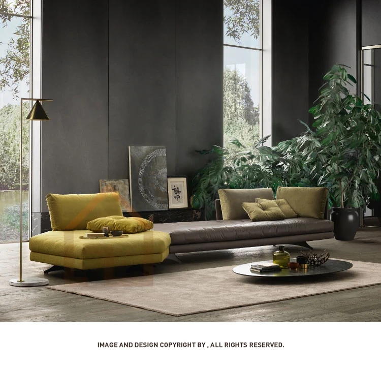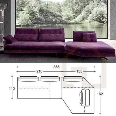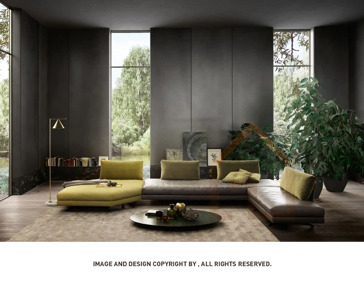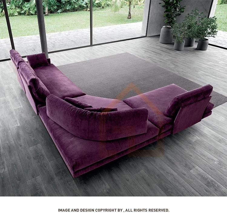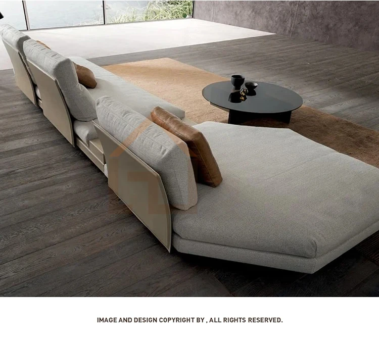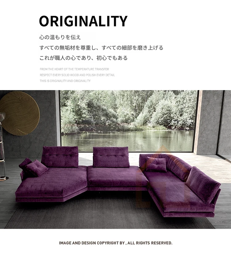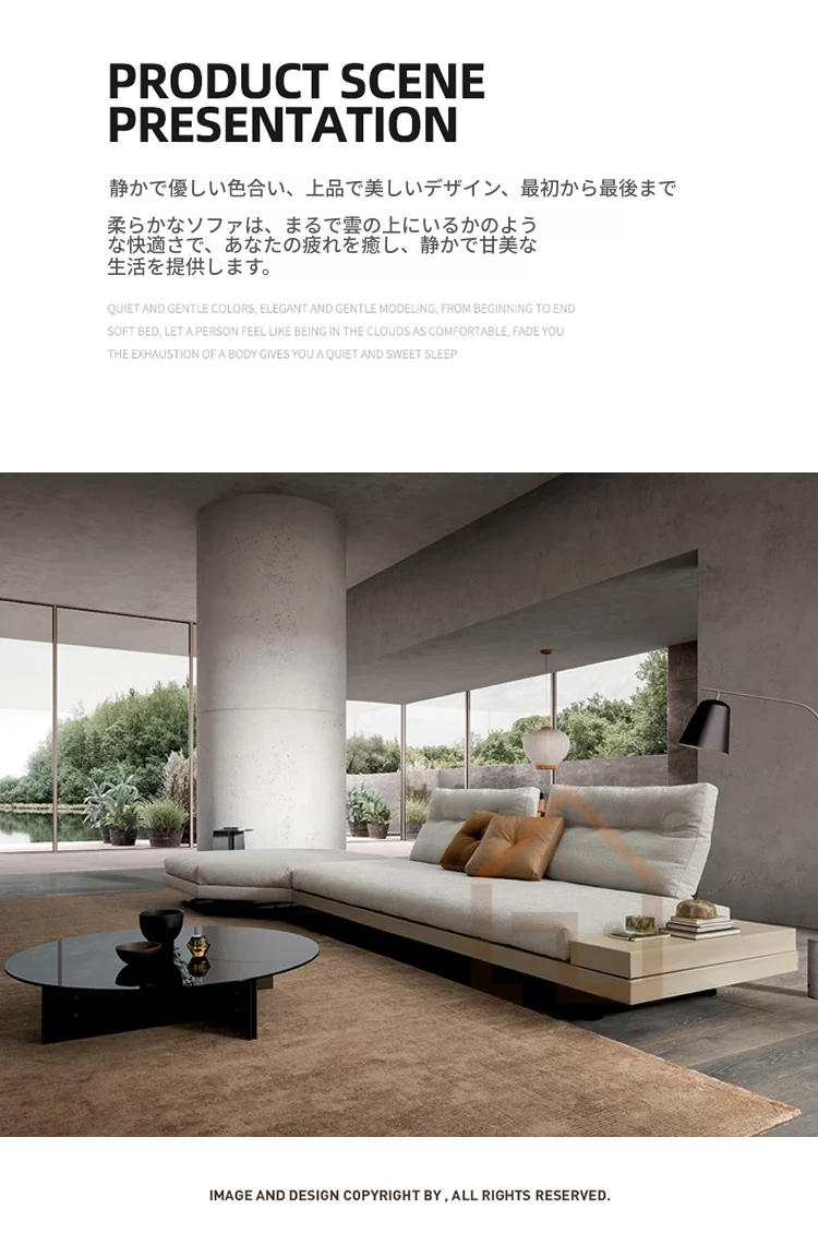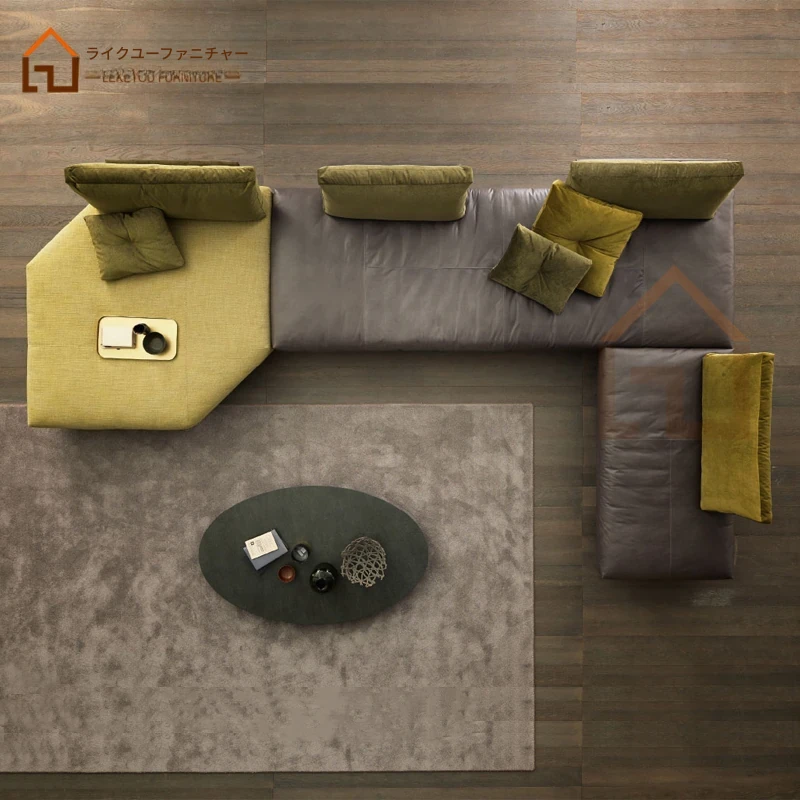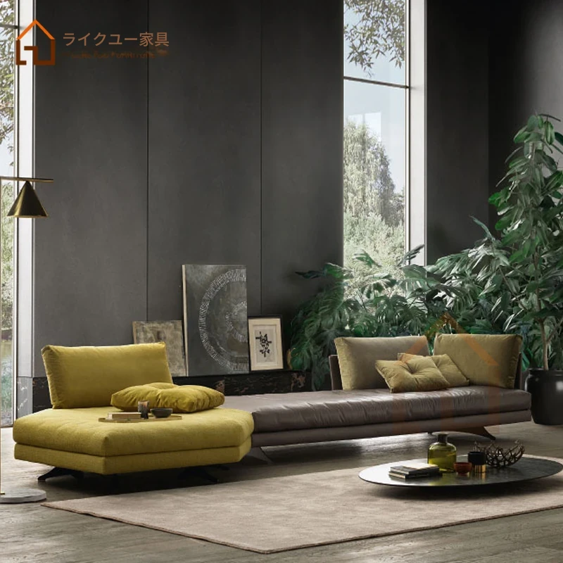 イタリアンスタイルの軽やかでラグジュアリーなモダンミニマリズム、コンパクトなリビングに最適なデザイナー製の異形コーナーソファ。高品質なテクノロジー布を使用した、広々とした大平面デザイン。あなたの空間に華やかさをプラス!