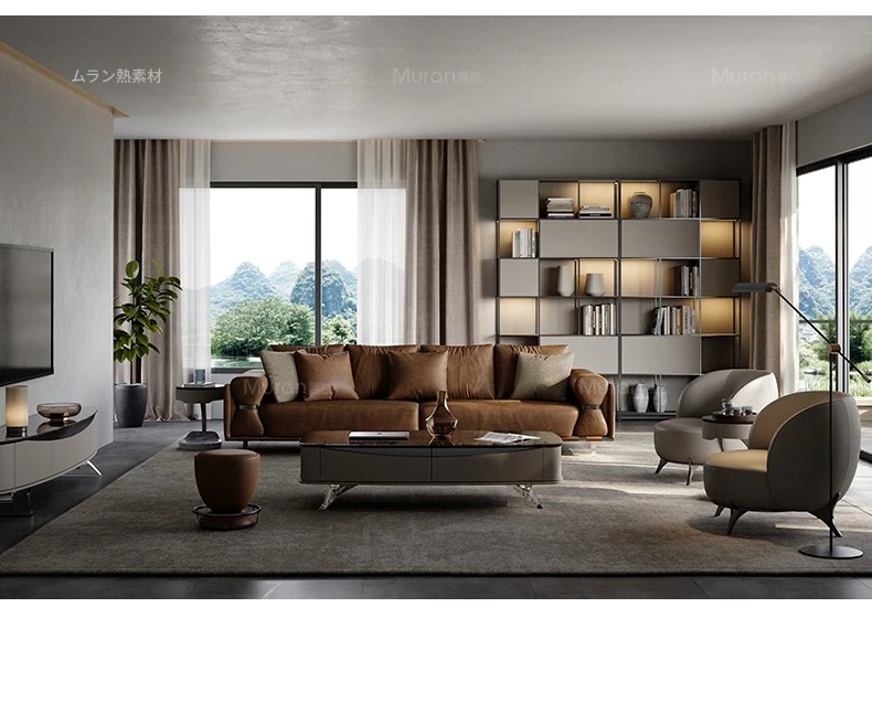 高級感溢れるイタリアンソファ - モダンなデザインで別荘や広々としたリビングに最適!洗練された軽奢スタイル、デザイナーによる直排ソファで、特別な空間を演出します。