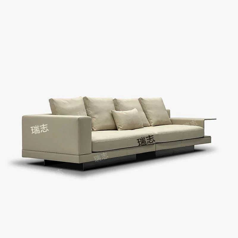 イタリアンミニマリズムデザインのラッチ付きマットファブリックソファ、別荘にぴったりのラグジュアリー感溢れるリビング用3人掛けソファ。広々とした空間に最適なスタイリッシュな直排デザイン!
