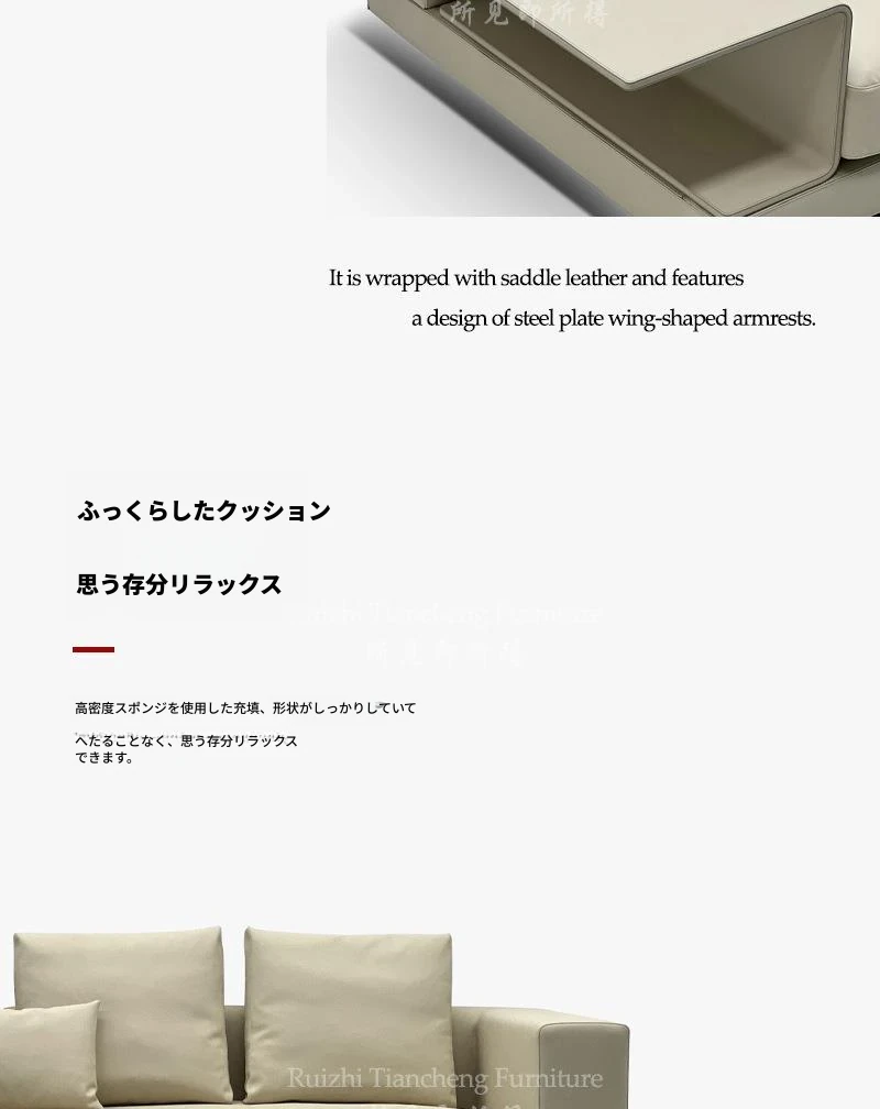 イタリアンミニマリズムのコナリ本革ソファ - スチールアームデザイン!デザイナーおすすめの人気インスタグラムソファ、羽毛入り本革コンビネーションソファで、あなたのリビングをスタイリッシュに演出します!