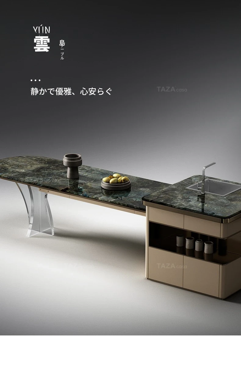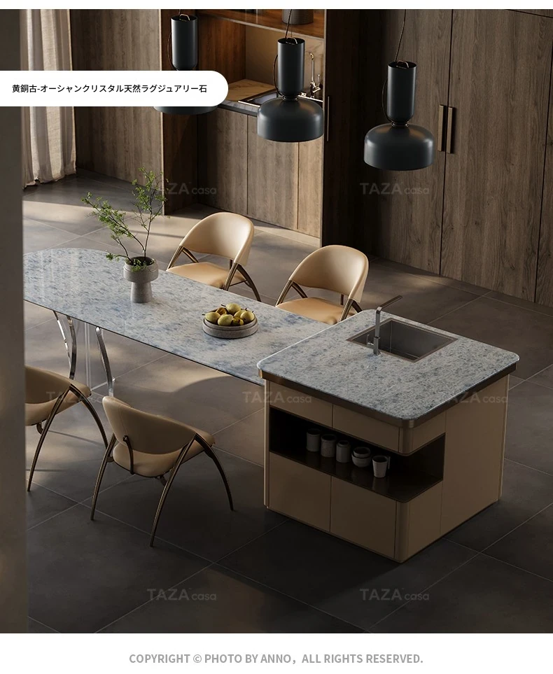 イタリアンミニマリズムのアイランドテーブル - モダンなデザインで軽やかな贅沢感を演出する大平面別荘用家具。洗練されたスタイルで、食事の時間を特別なひとときに変えます。