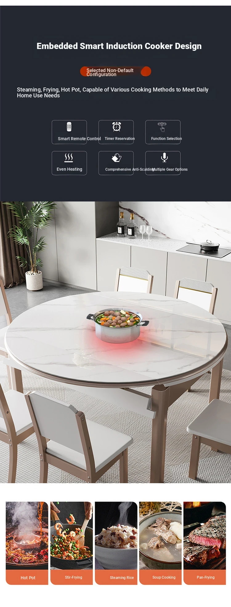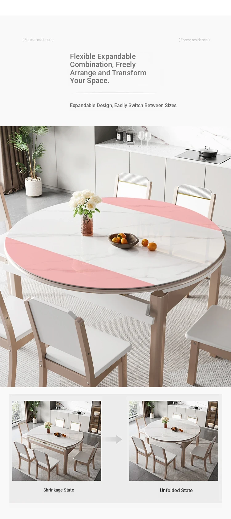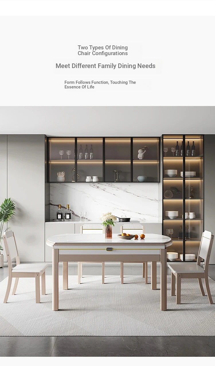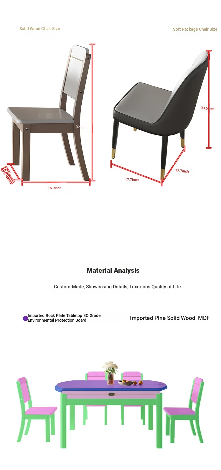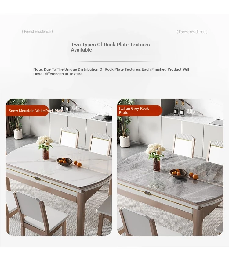 [Solid Wood Dining Chair] 0.47in Bright Snow Mountain White Rock Board Dining Table, 47.24 in Single Table +6 Chairs