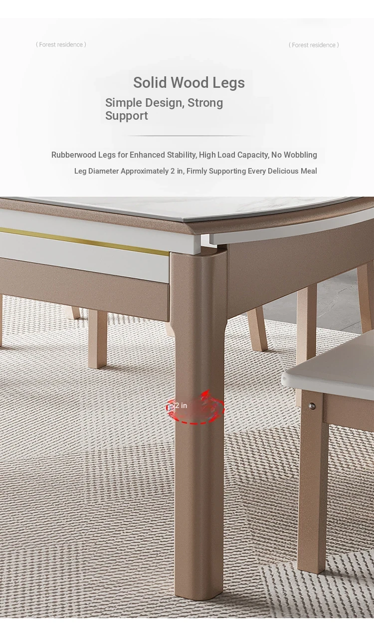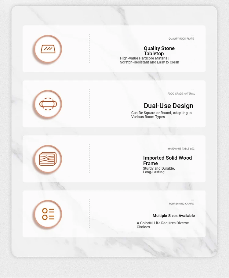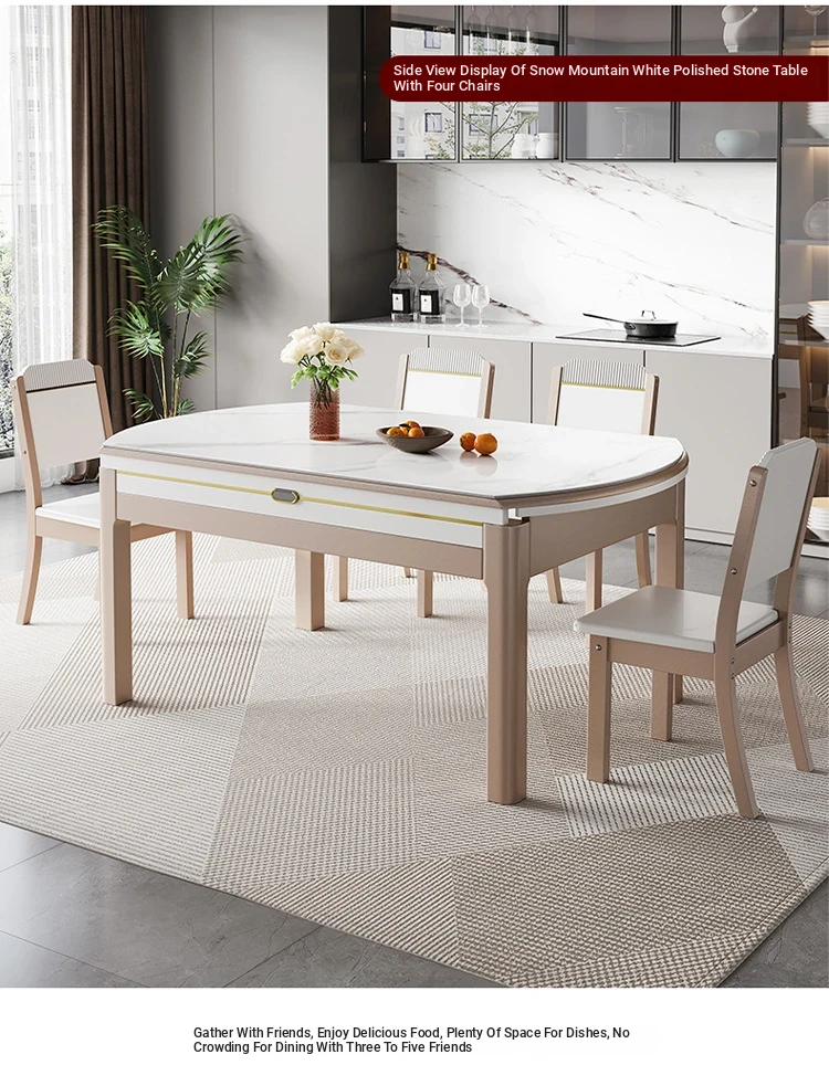 [Solid Wood Dining Chair] 0.47in Bright Snow Mountain White Rock Board Dining Table, 47.24 in Single Table +4 Chairs