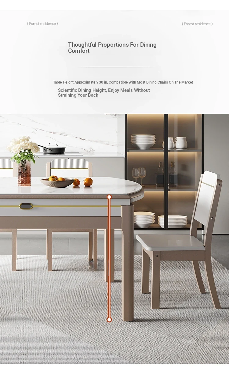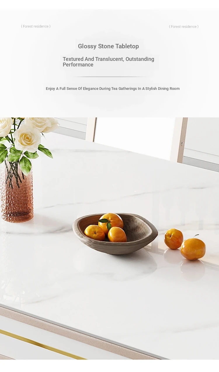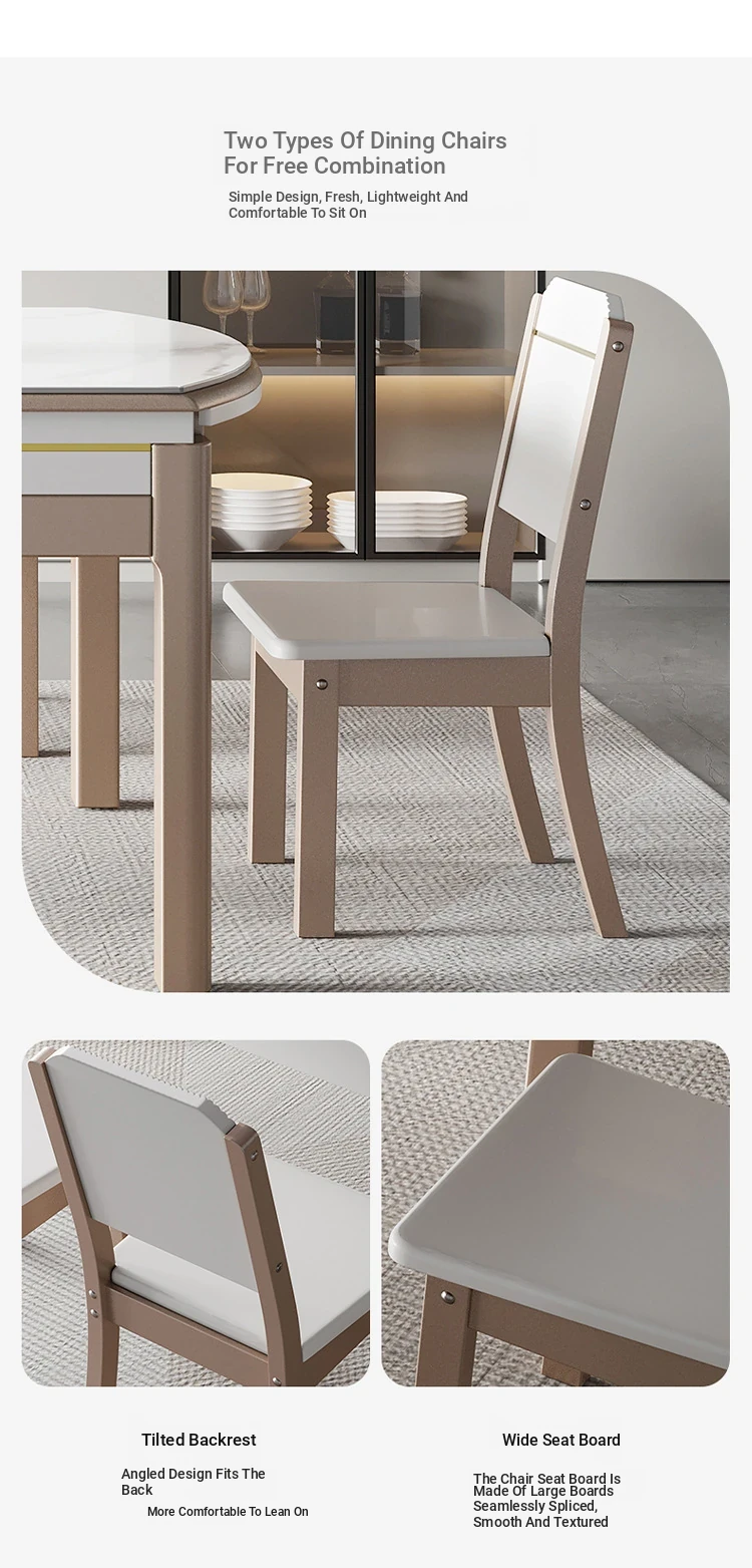 [Solid Wood Dining Chair] 0.47in Bright Snow Mountain White Rock Board Dining Table, 47.24 in Single Table