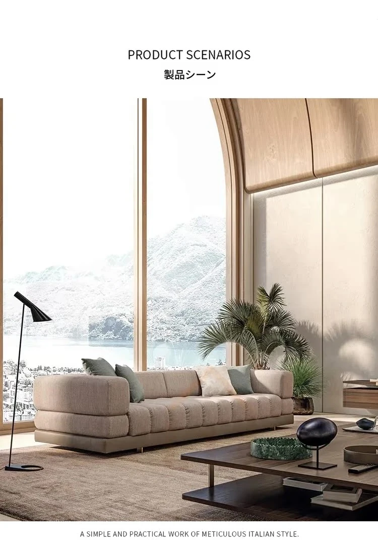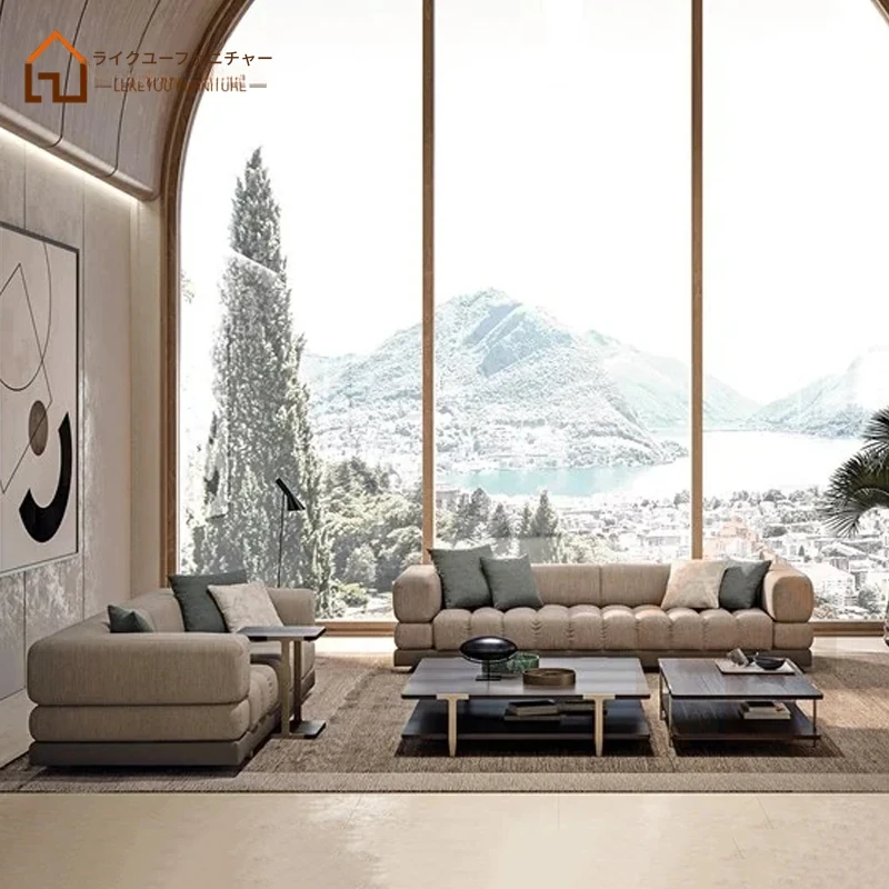 イタリアンスタイルのヴィラにぴったり!デザイナーシンプルモダンソファ。広々としたリビングルームに最適な多人数用レザー&ファブリックソファ。心地よいくつろぎ空間を演出します!