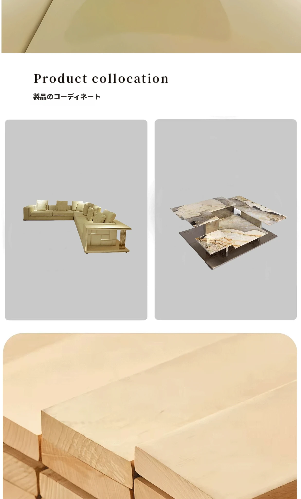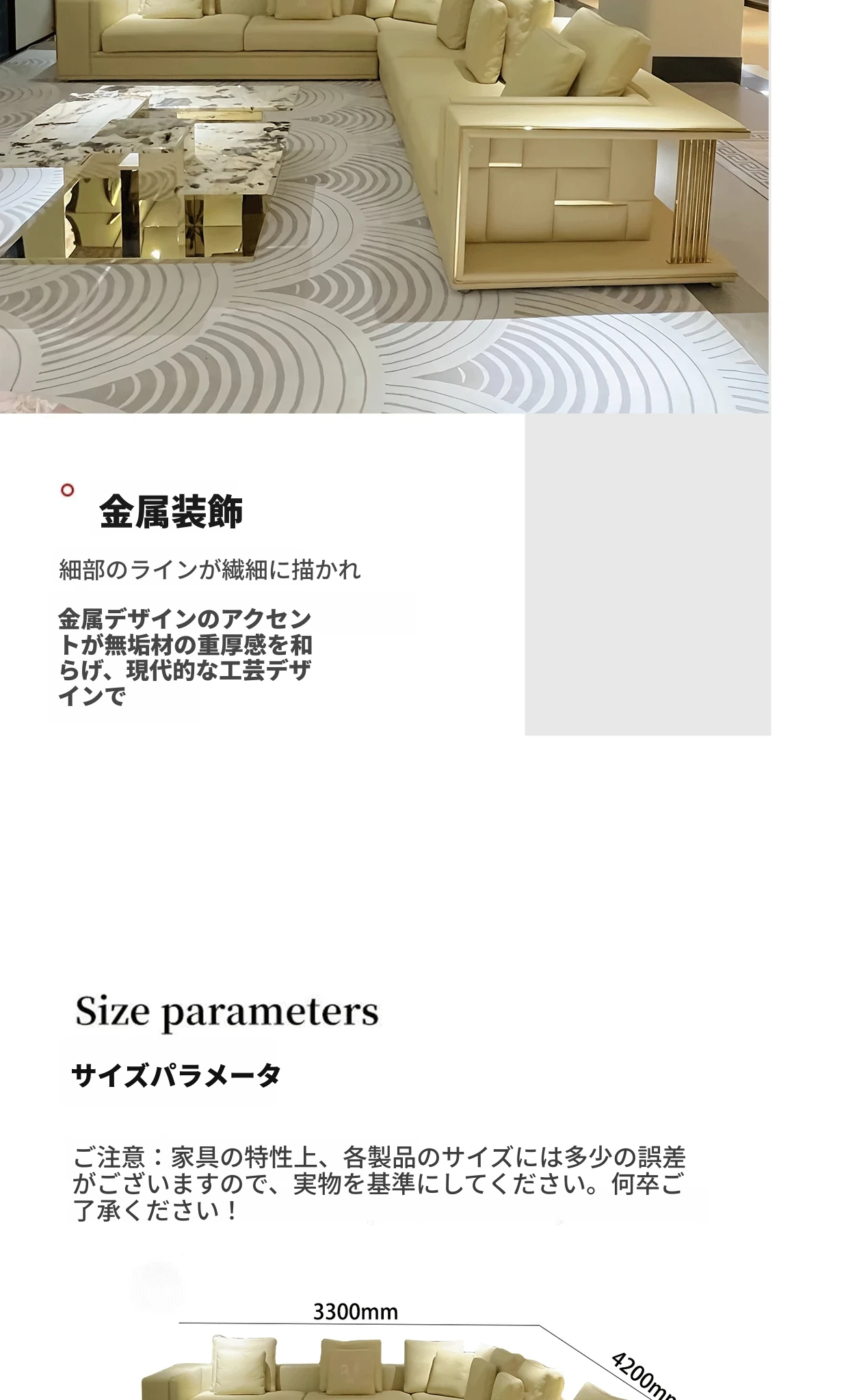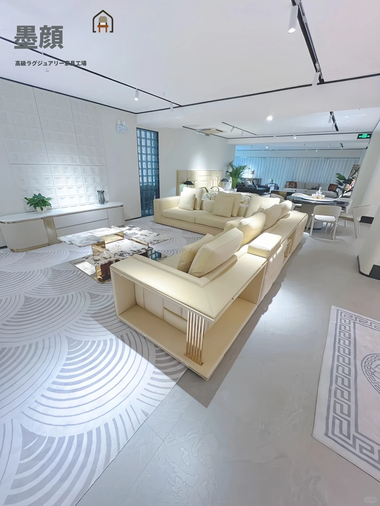 香港スタイルのラグジュアリーサンプルルーム!シングル、ダブル、トリプル対応の高品質レザーとファブリックのソファ。イタリアンデザインのリビングにぴったりのステンレスゴールド仕上げ!快適さとエレガンスを両立した空間を演出します。