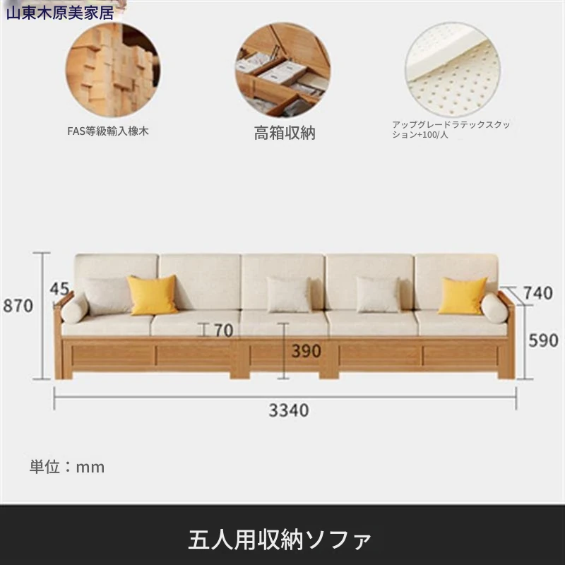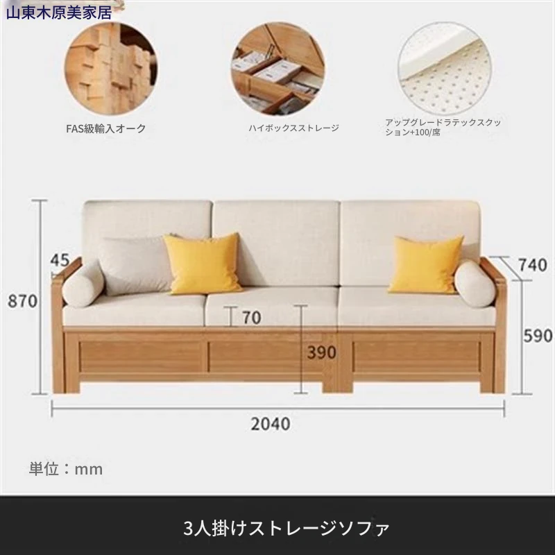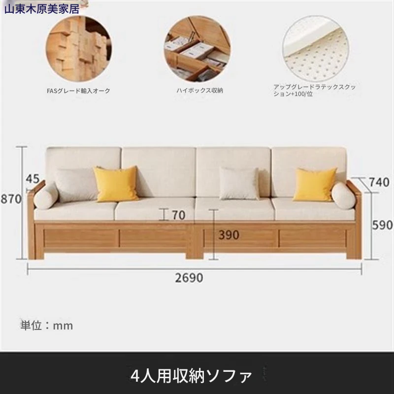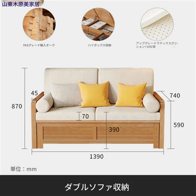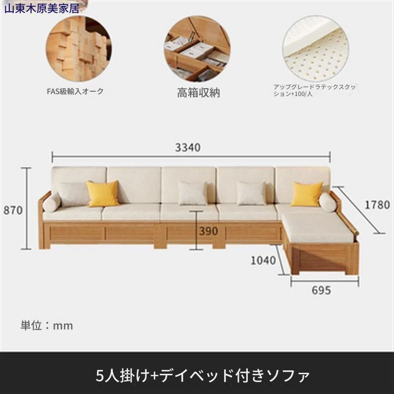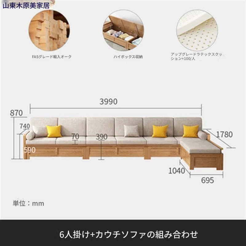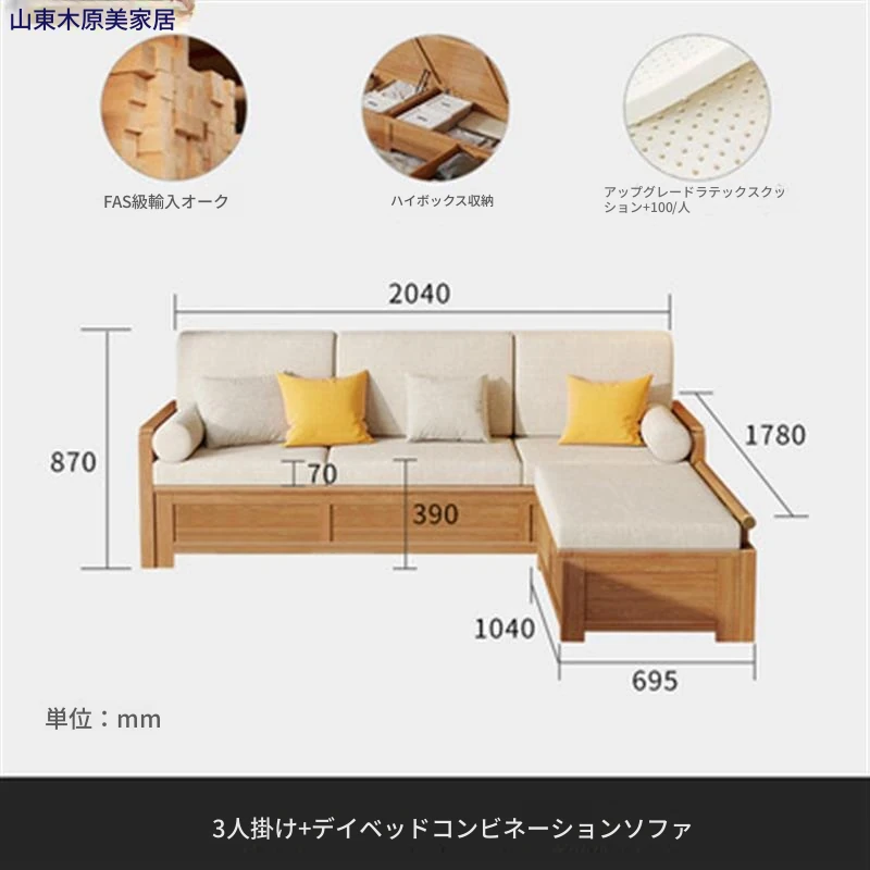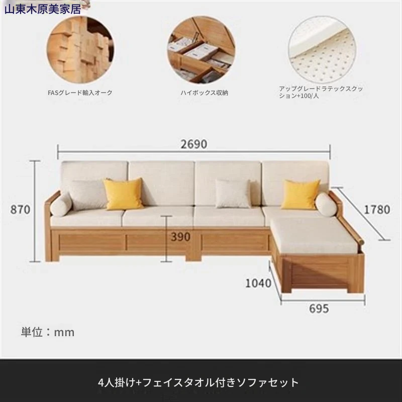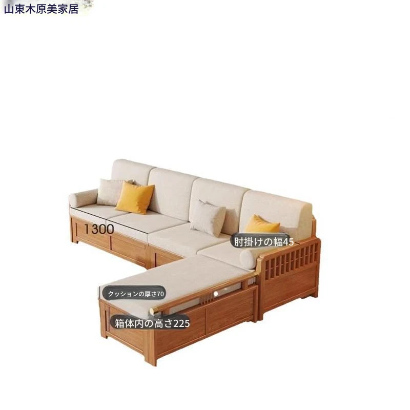 和風さくらチェリー冬木無垢材ソファ SF-86|リビング角用・高夏ボックス収納・シンプルでスタイリッシュなホワイトオーク仕上げ|おしゃれで機能的な空間を演出!