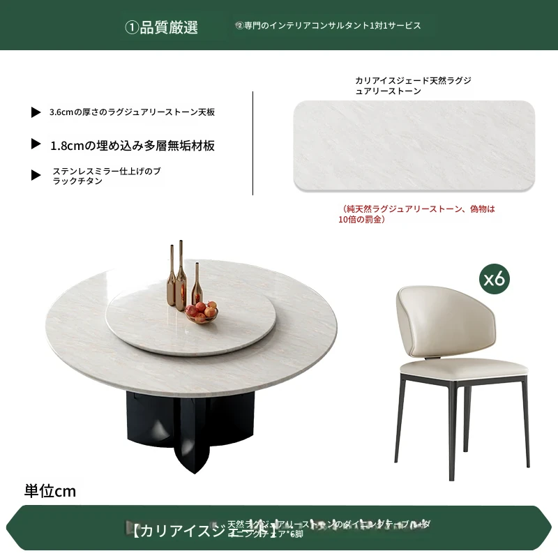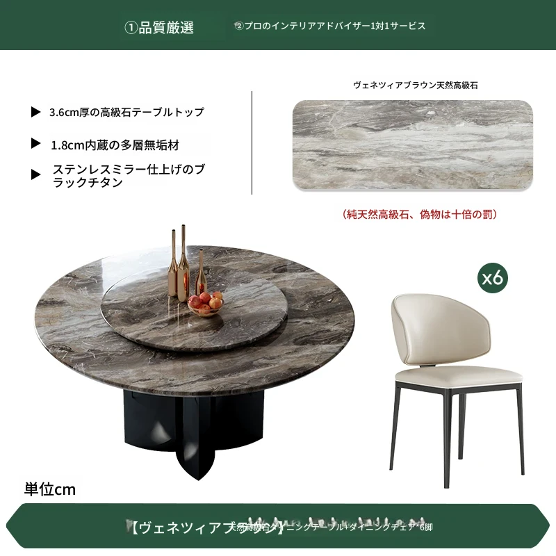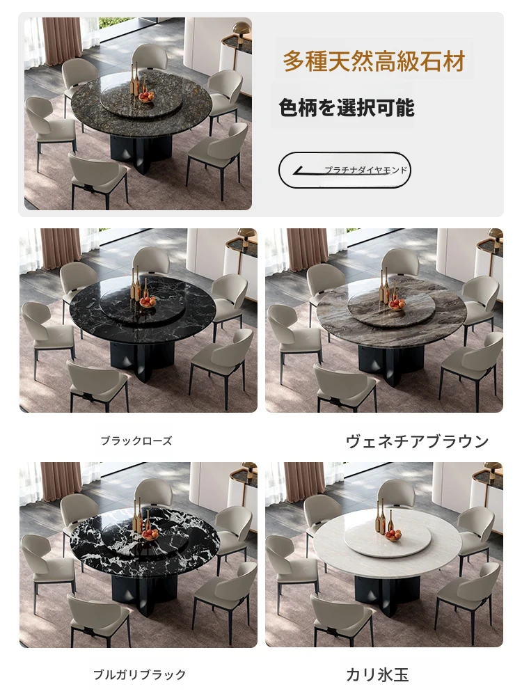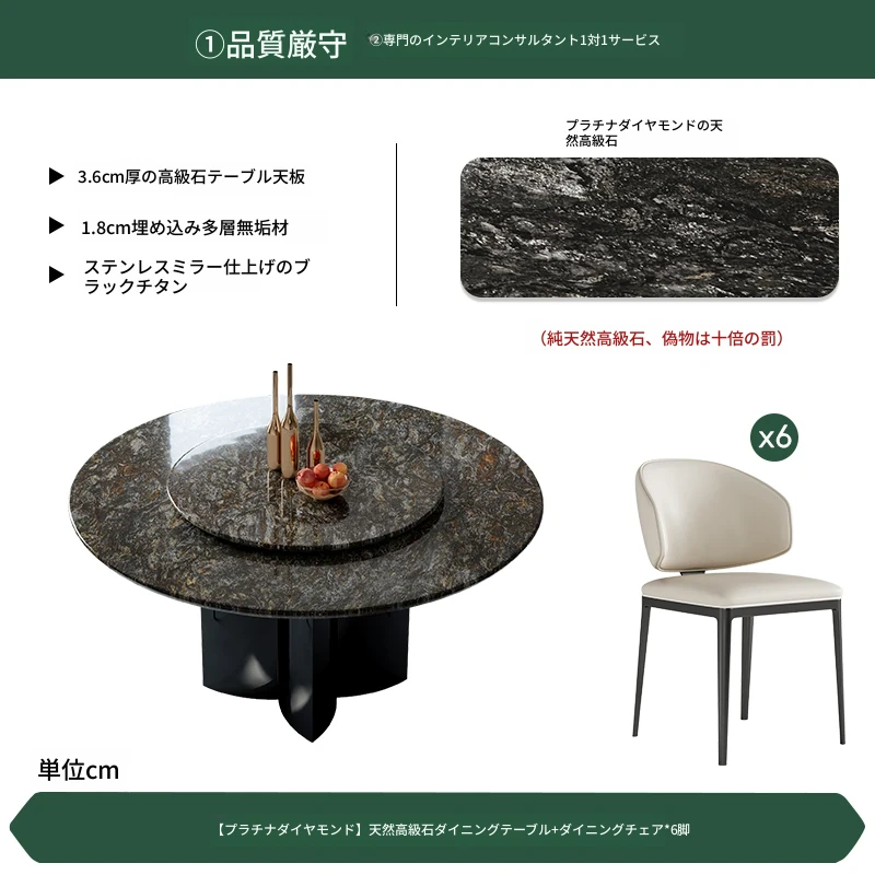 [プラチナダイヤモンド] 天然ラグジュアリーストーン ダイニングテーブル+回転台+ダイニングチェア*6