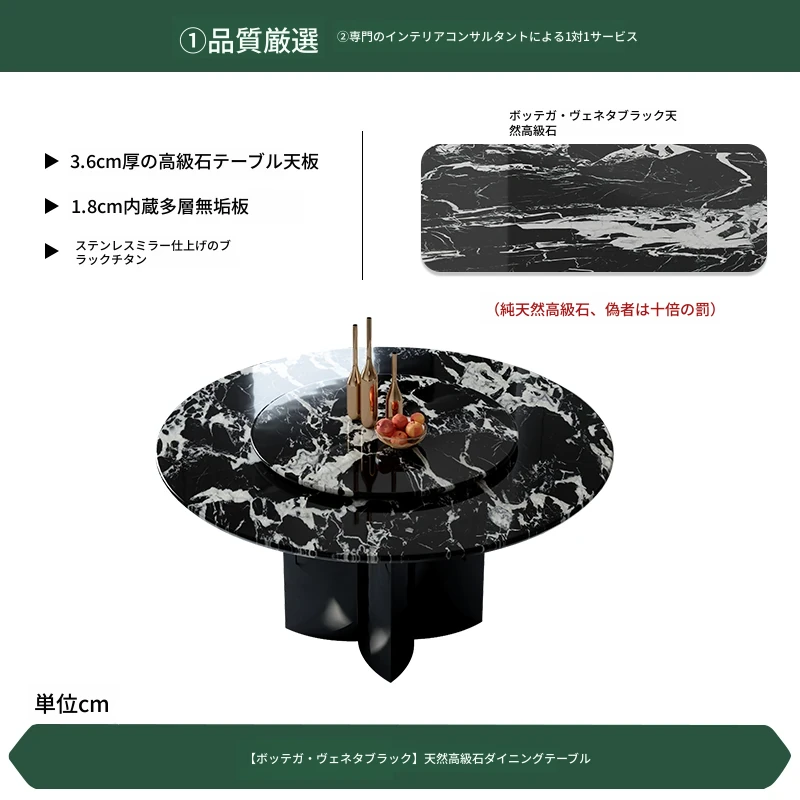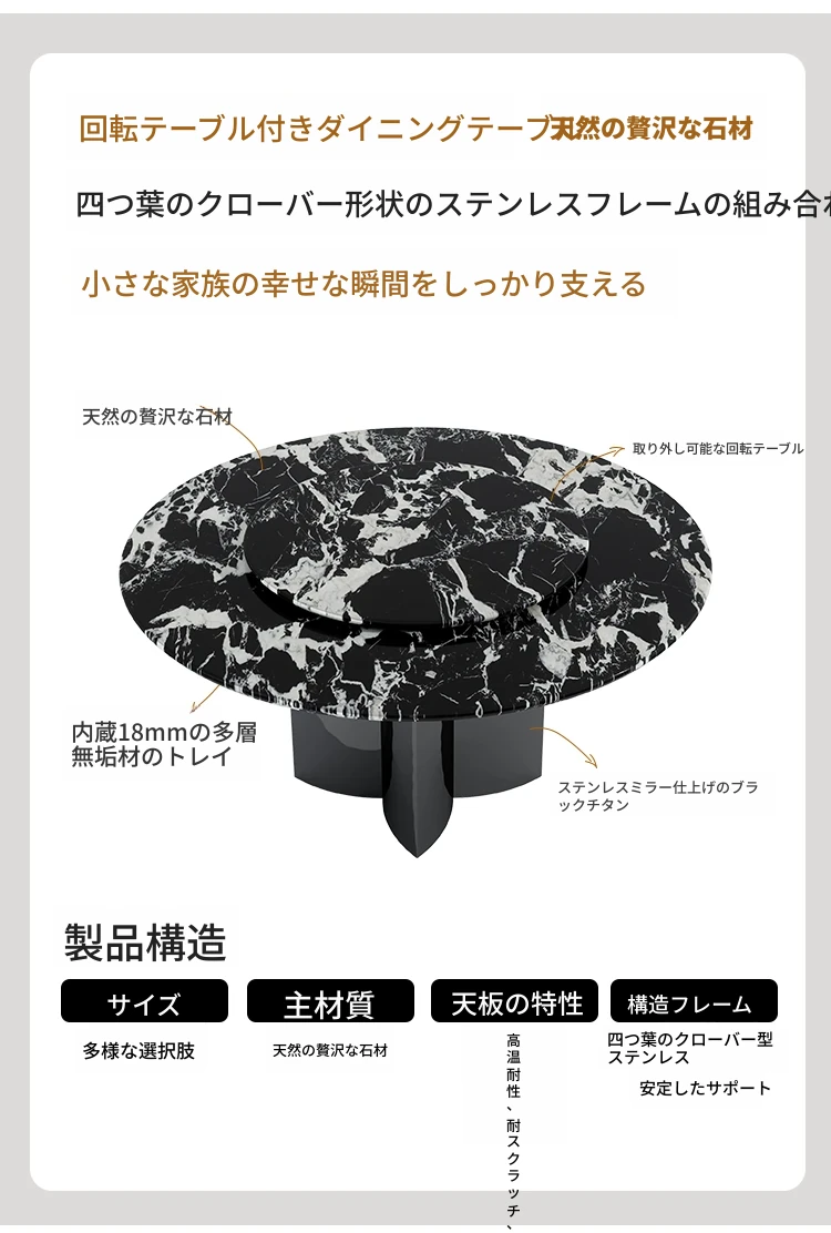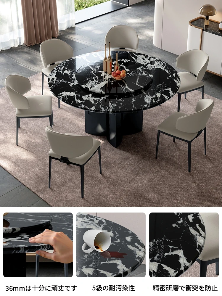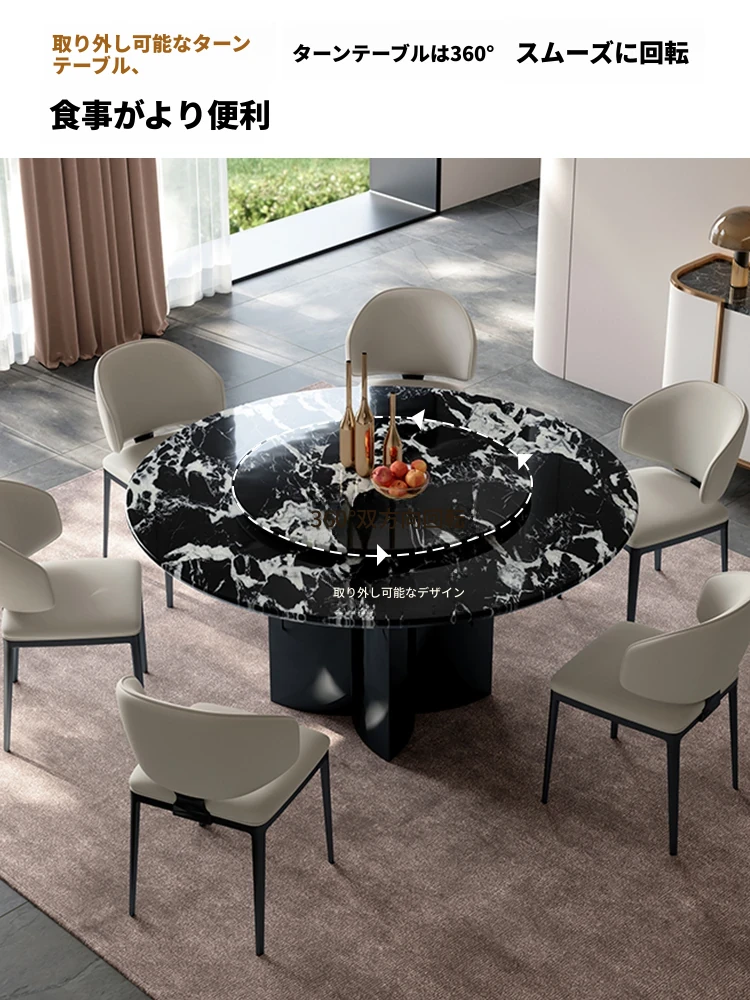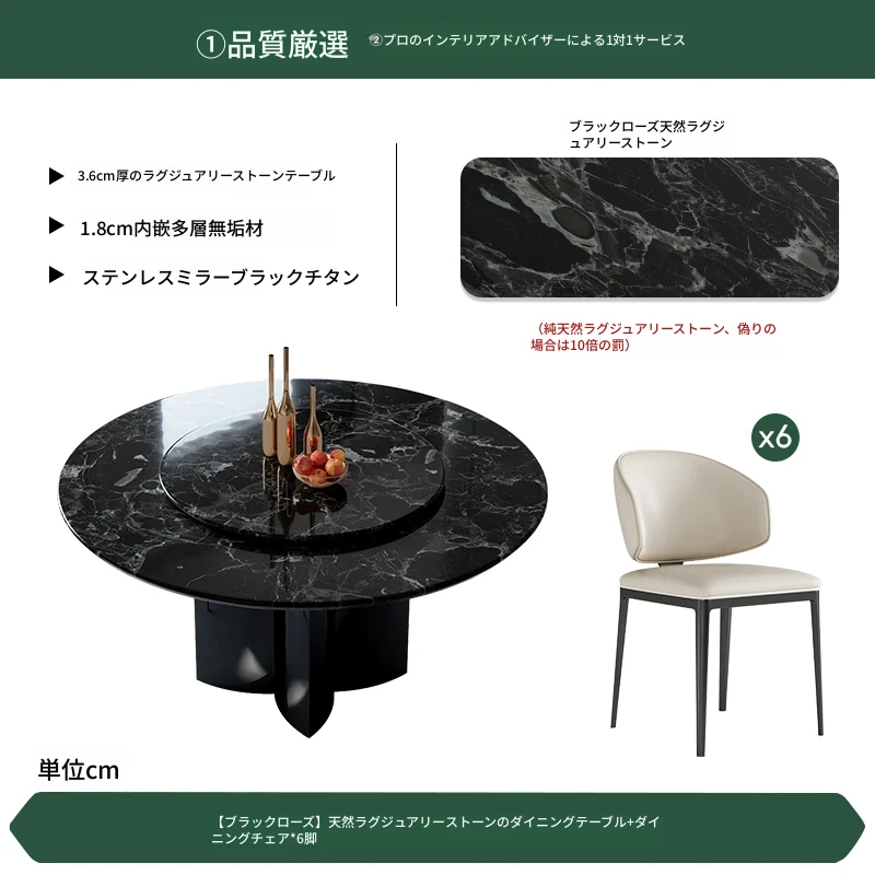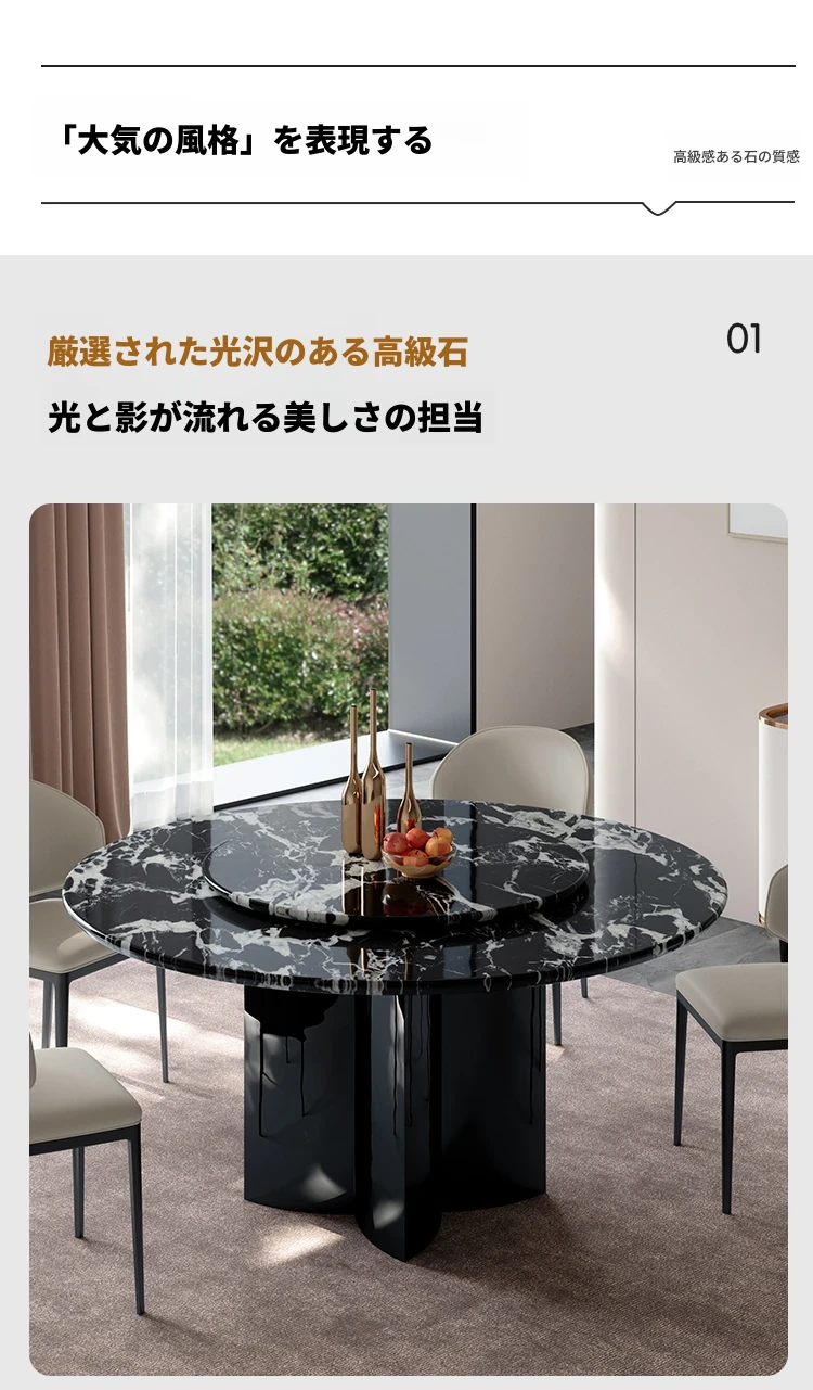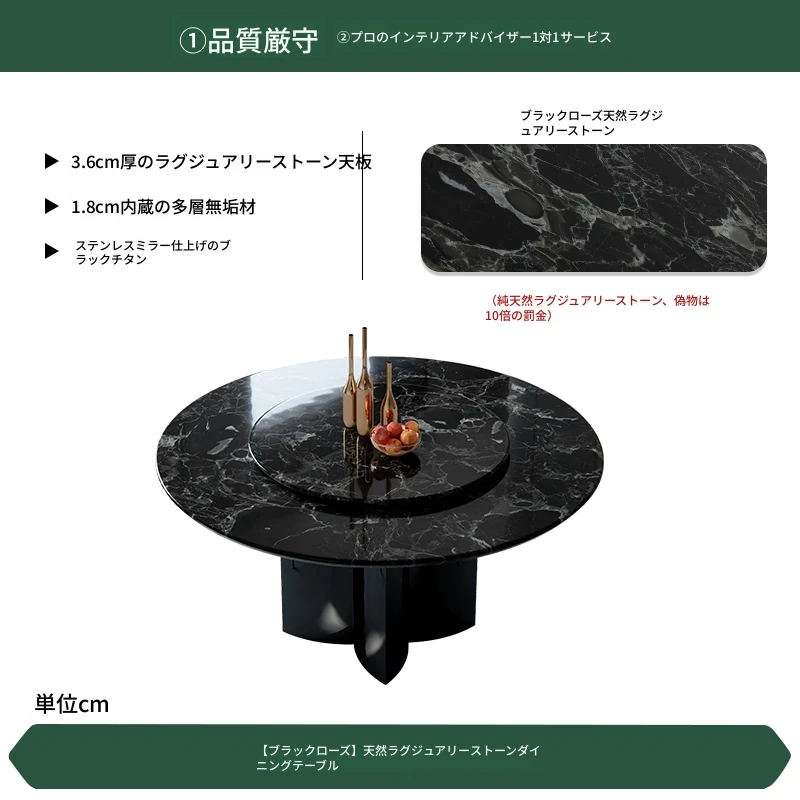 [ブラックローズ] 天然ラグジュアリーストーン ダイニングテーブル+回転台