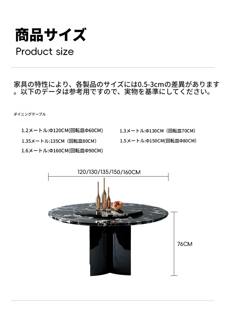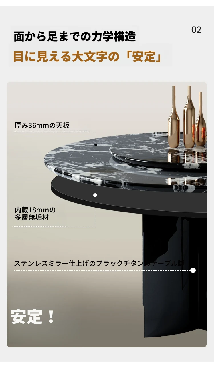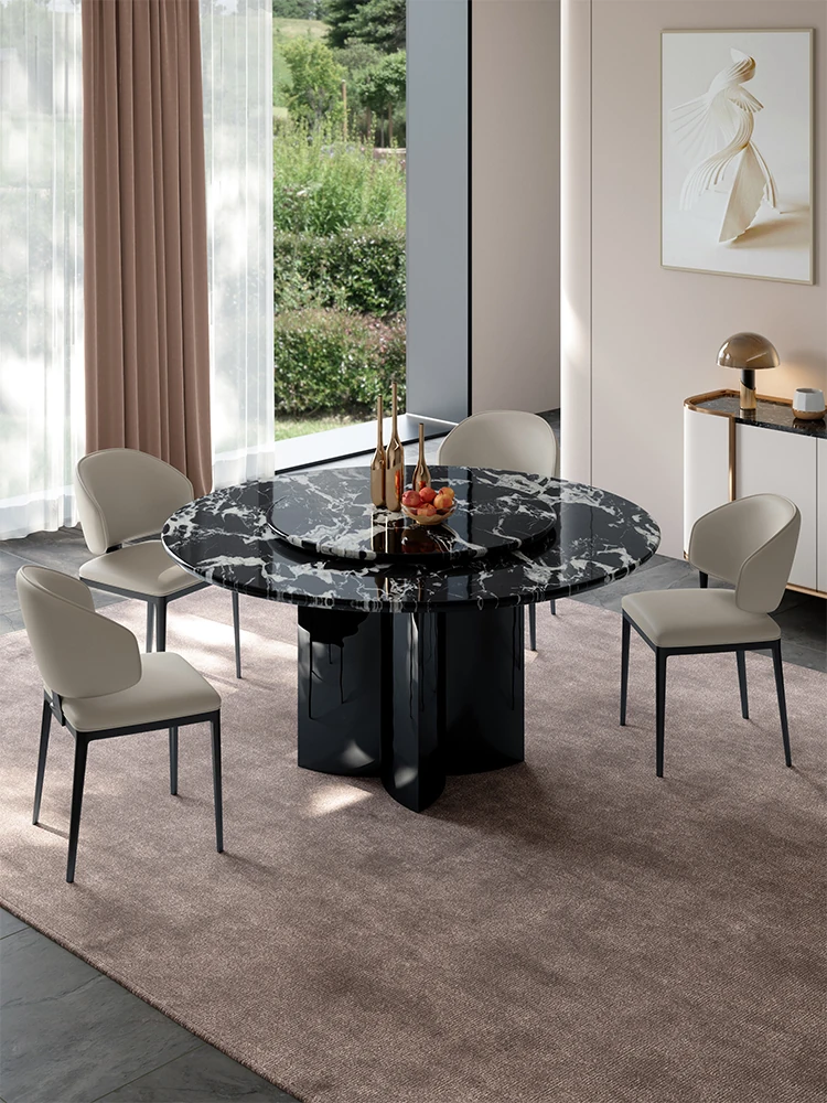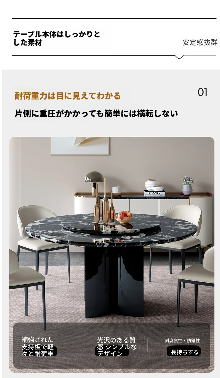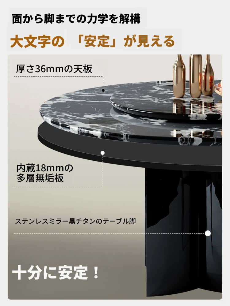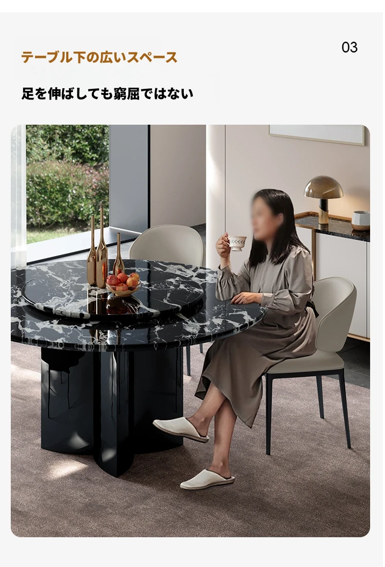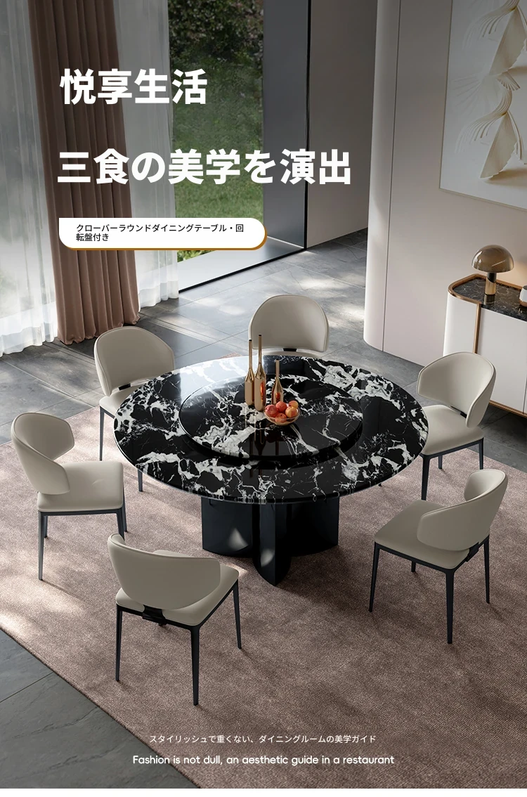 [ブラックローズ] 天然ラグジュアリーストーン ダイニングテーブル+回転台