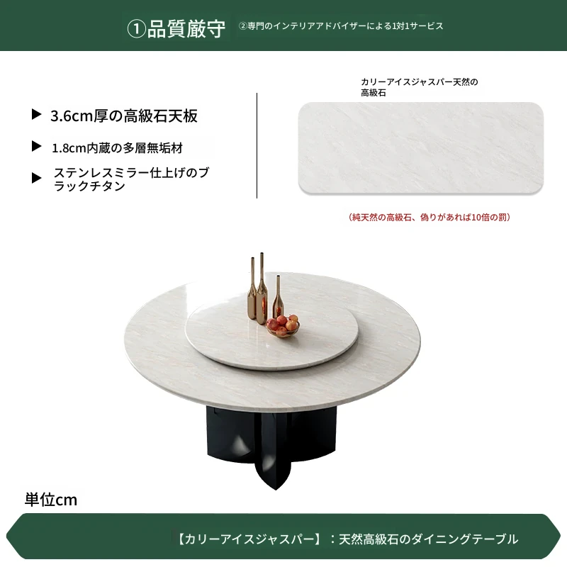 [カリビアンアイスジャスパー] 天然ラグジュアリーストーン ダイニングテーブル+回転台