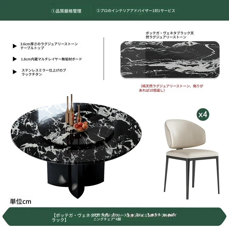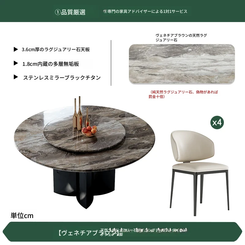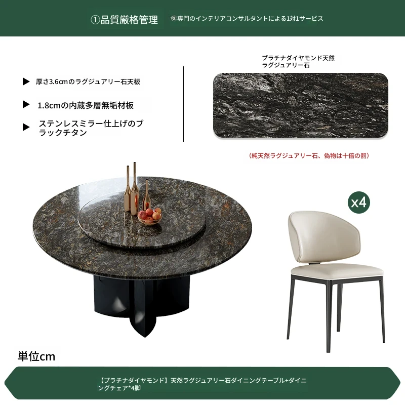 [プラチナダイヤモンド] 天然ラグジュアリーストーン ダイニングテーブル+回転台+ダイニングチェア*4