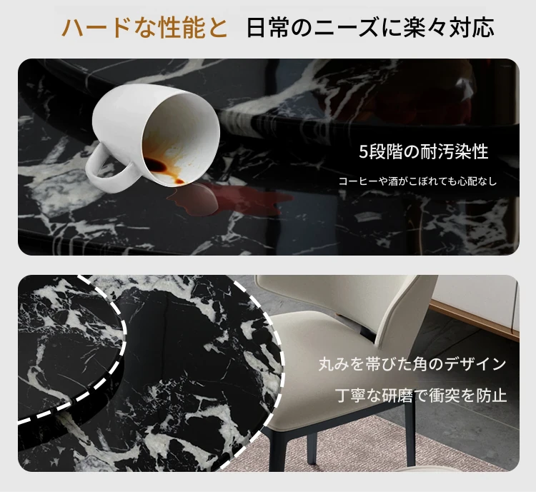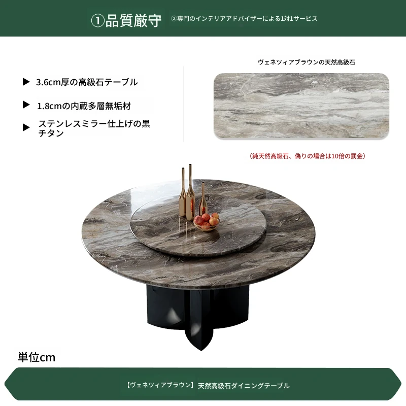 [国産ヴェネツィアブラウン] 天然ラグジュアリーストーン ダイニングテーブル+回転台