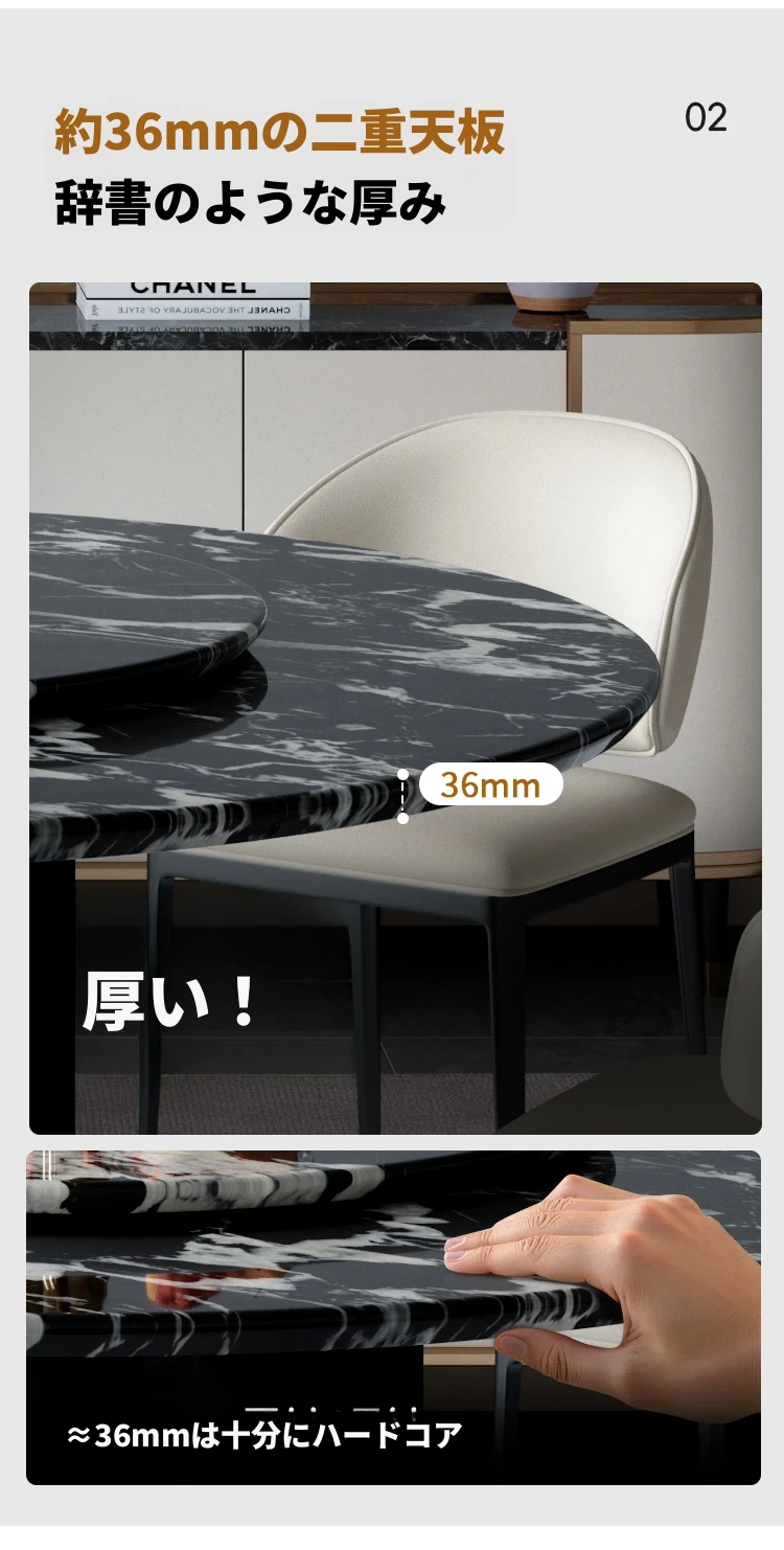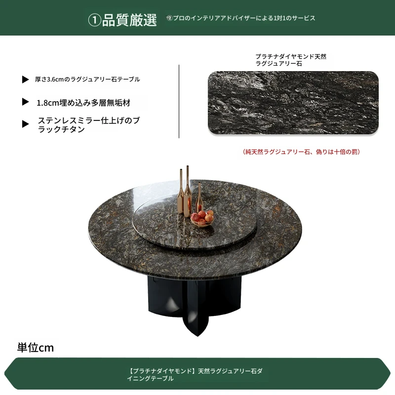 [プラチナダイヤモンド] 天然ラグジュアリーストーン ダイニングテーブル+回転台