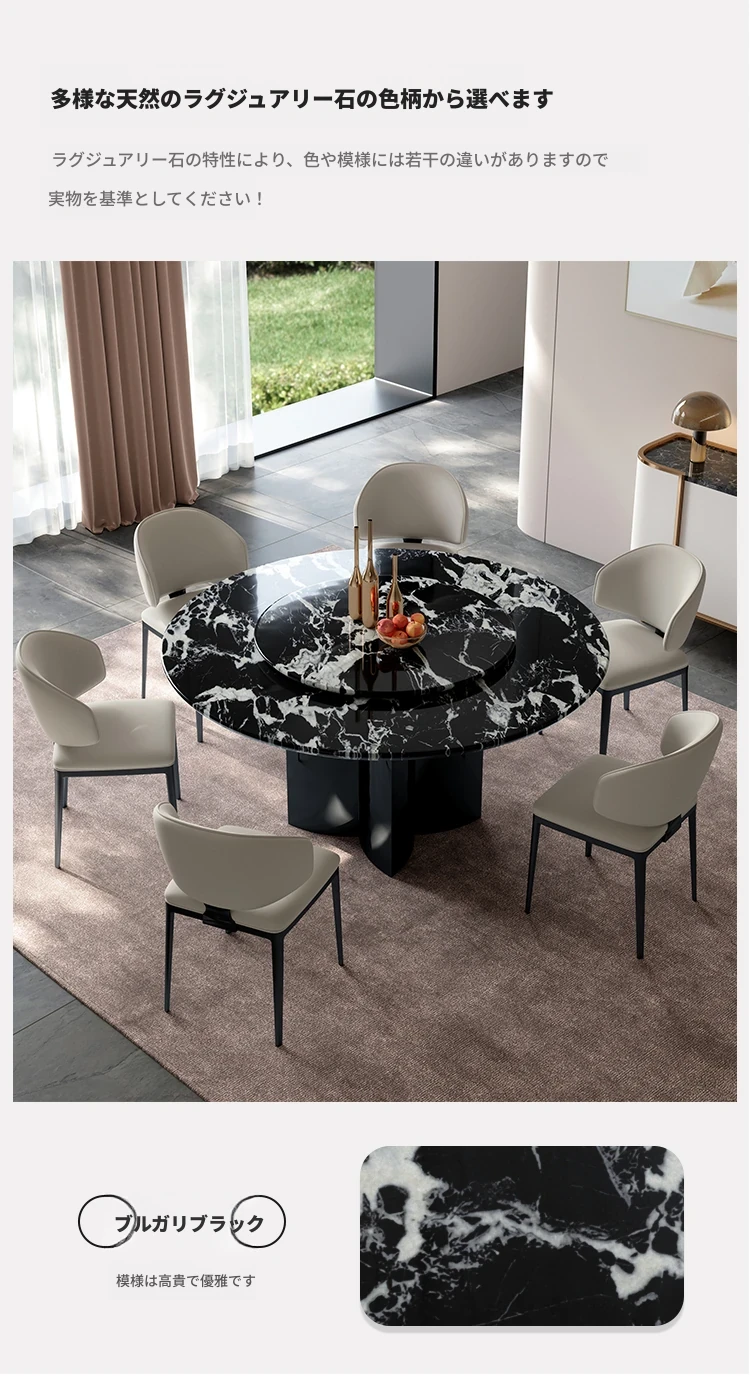 [ブルガリブラック] 天然ラグジュアリーストーン ダイニングテーブル+回転台