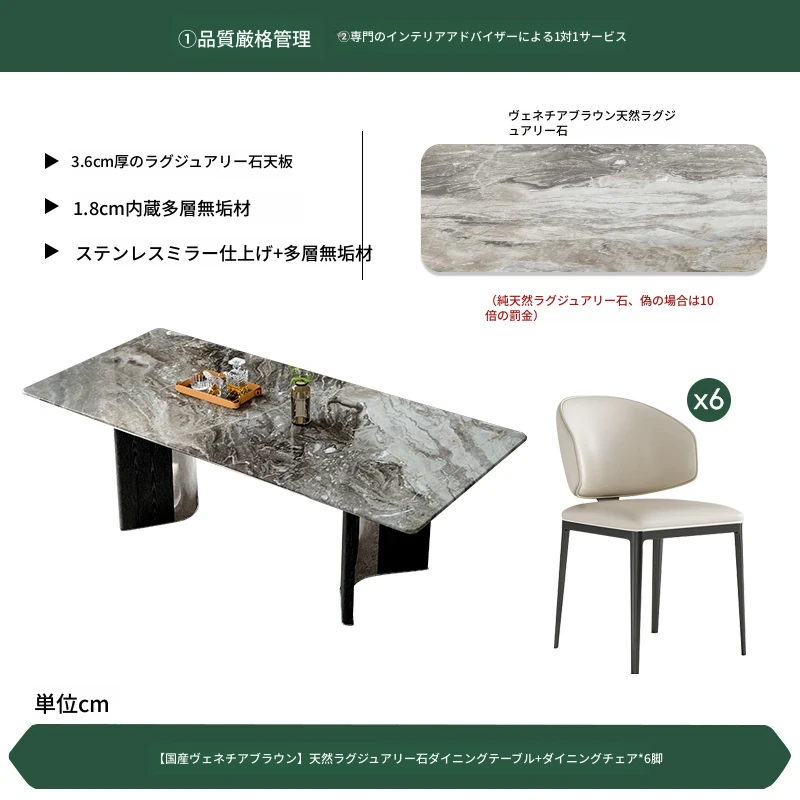 [国産ヴェネチアブラウン]天然豪華石材ダイニングテーブル+ダイニングチェア*6(純天然豪華石材、偽物は十倍の罰)