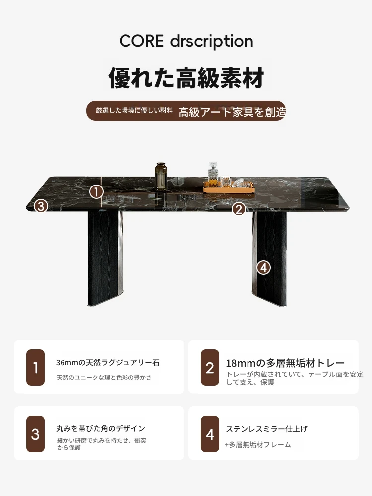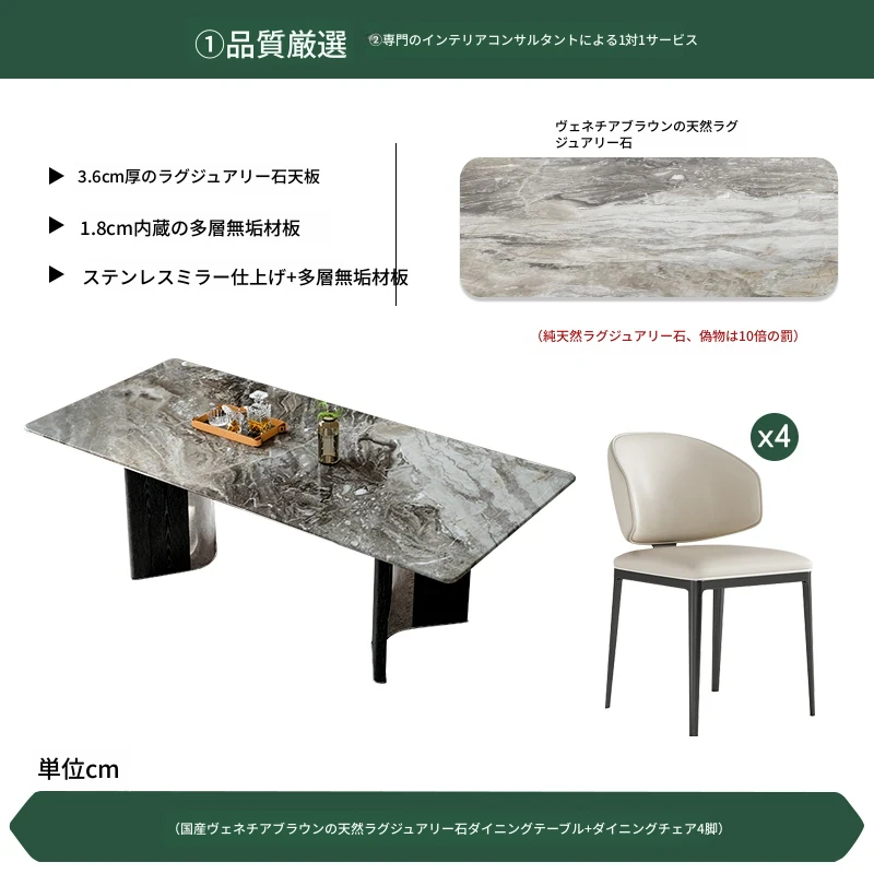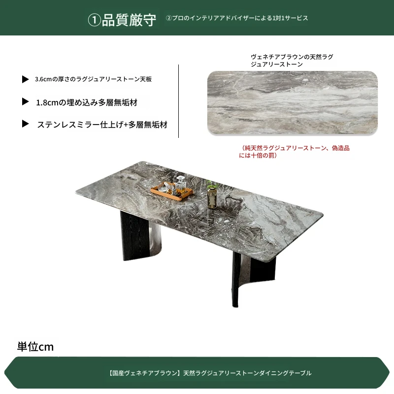 [国産ヴェネチアブラウン]天然豪華石材ダイニングテーブル(純天然豪華石材、偽物は十倍の罰)