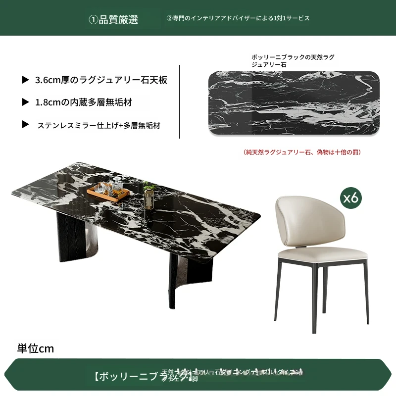 [ブルガリブラック]天然豪華石材ダイニングテーブル+ダイニングチェア*6(純天然豪華石材、偽物は十倍の罰)