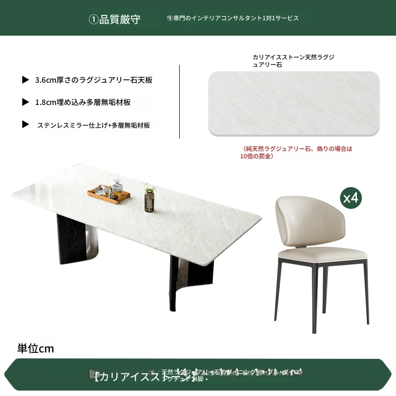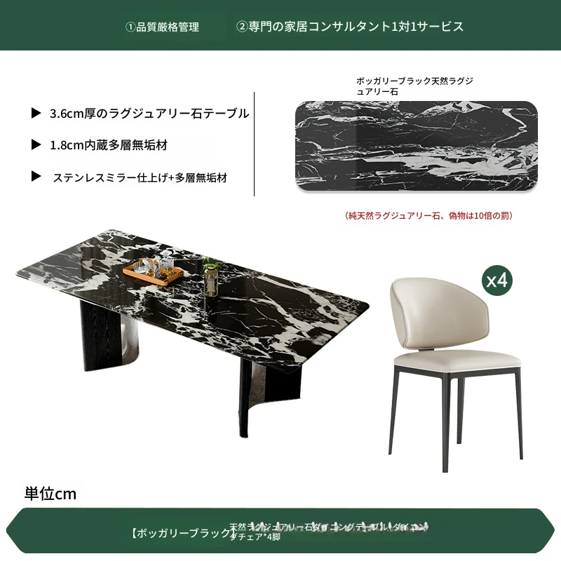 [カリアイスジェイド]天然豪華石材ダイニングテーブル+ダイニングチェア*4(純天然豪華石材、偽物は十倍の罰)