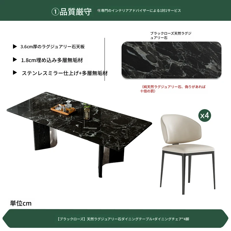 [ブラックローズ]天然豪華石材ダイニングテーブル+ダイニングチェア*4(純天然豪華石材、偽物は十倍の罰)