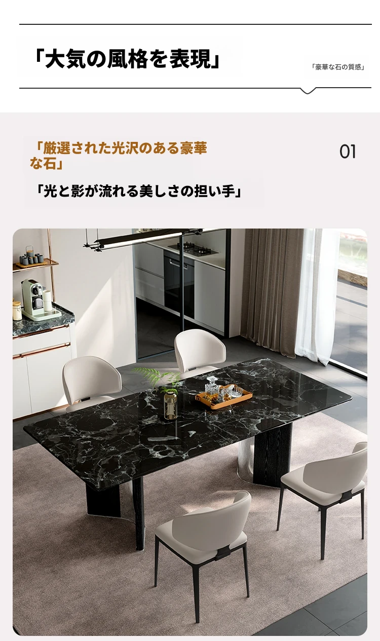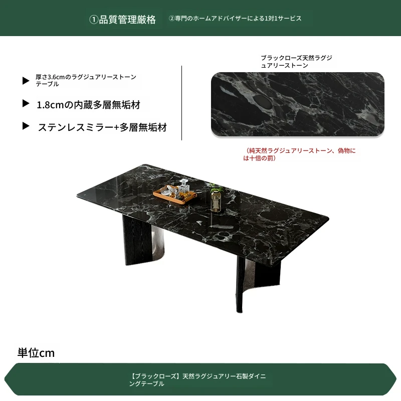 [ブラックローズ]天然豪華石材ダイニングテーブル(純天然豪華石材、偽物は十倍の罰)