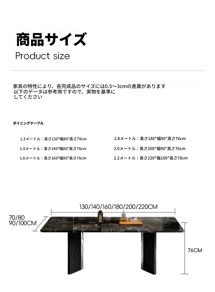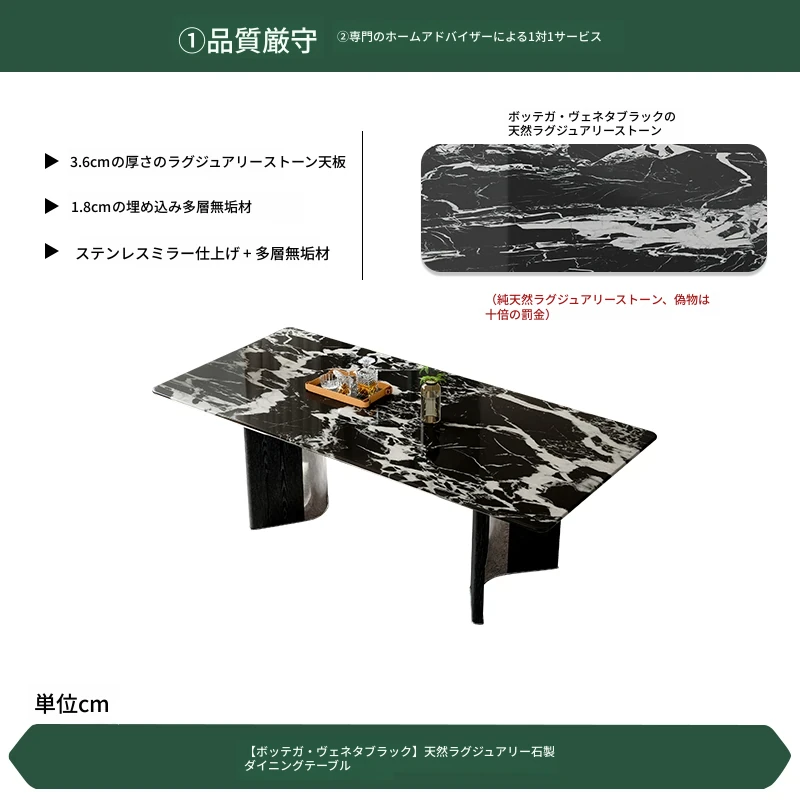 [ブルガリブラック]天然豪華石材ダイニングテーブル(純天然豪華石材、偽物は十倍の罰)