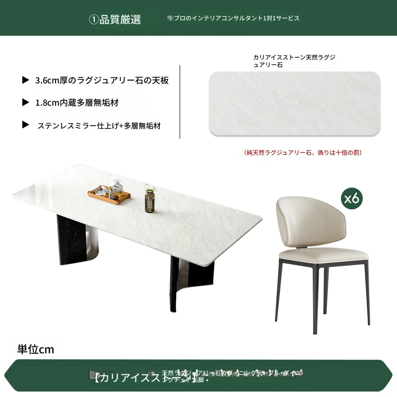[カリアイスジェイド]天然豪華石材ダイニングテーブル+ダイニングチェア*6(純天然豪華石材、偽物は十倍の罰)