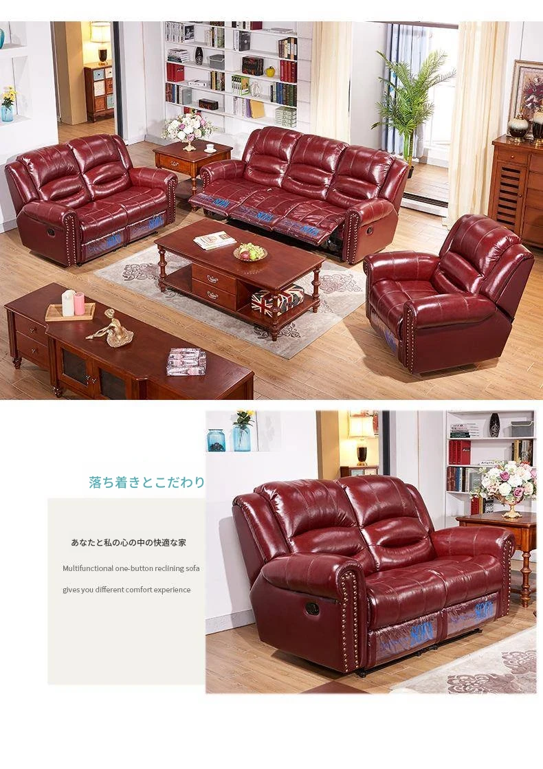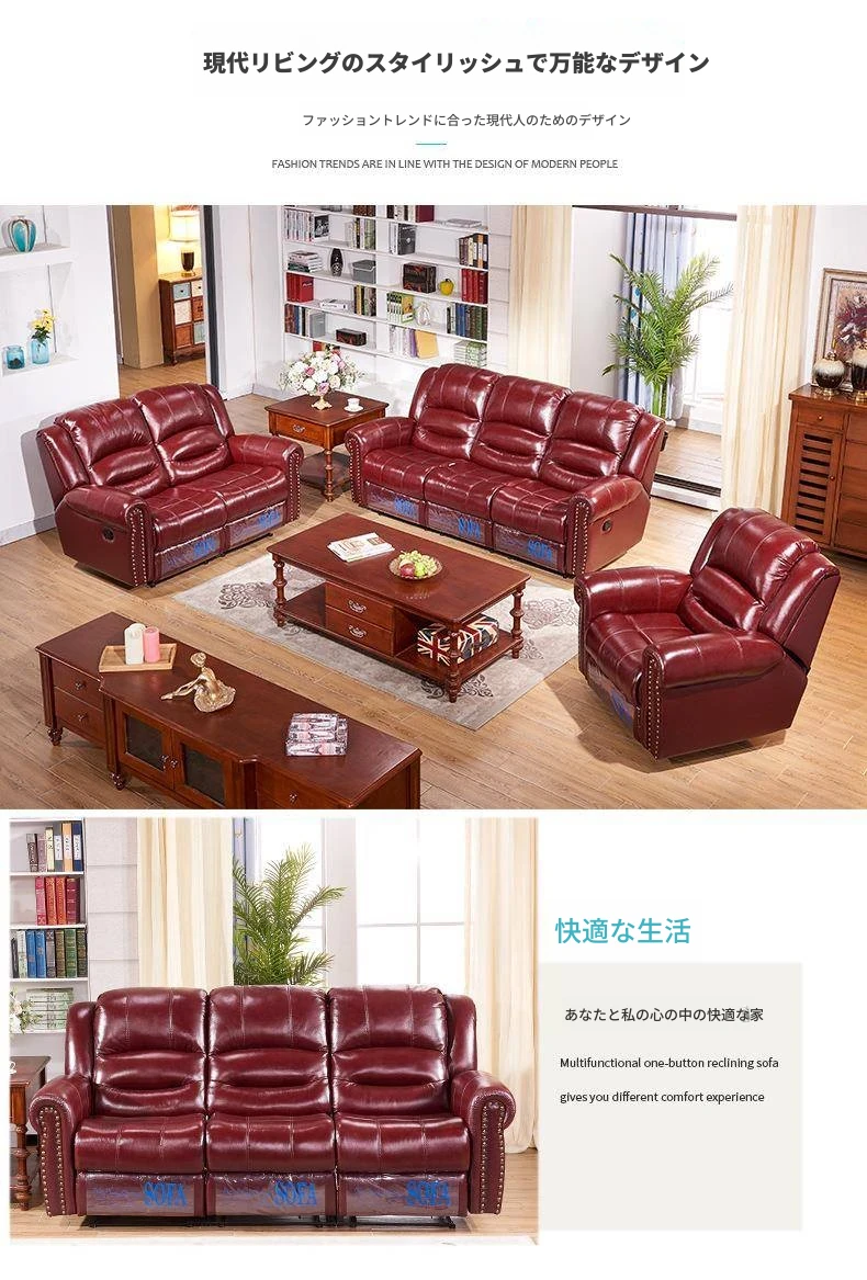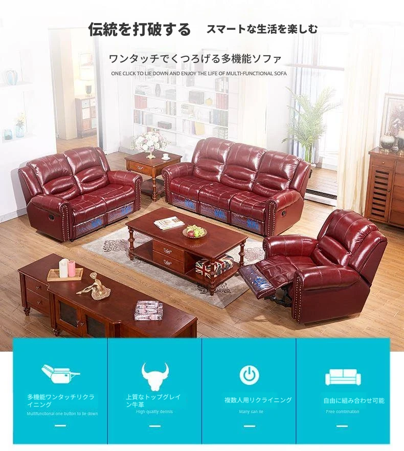 高級欧風本革リビングルーム用コンビネーションソファ - 上質な牛革を使用した電動ソファ、広々とした空間に最適な快適な座り心地を提供します。贅沢なデザインで、あなたのリビングを優雅に演出!