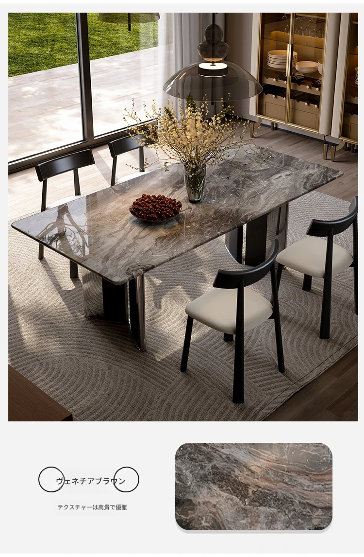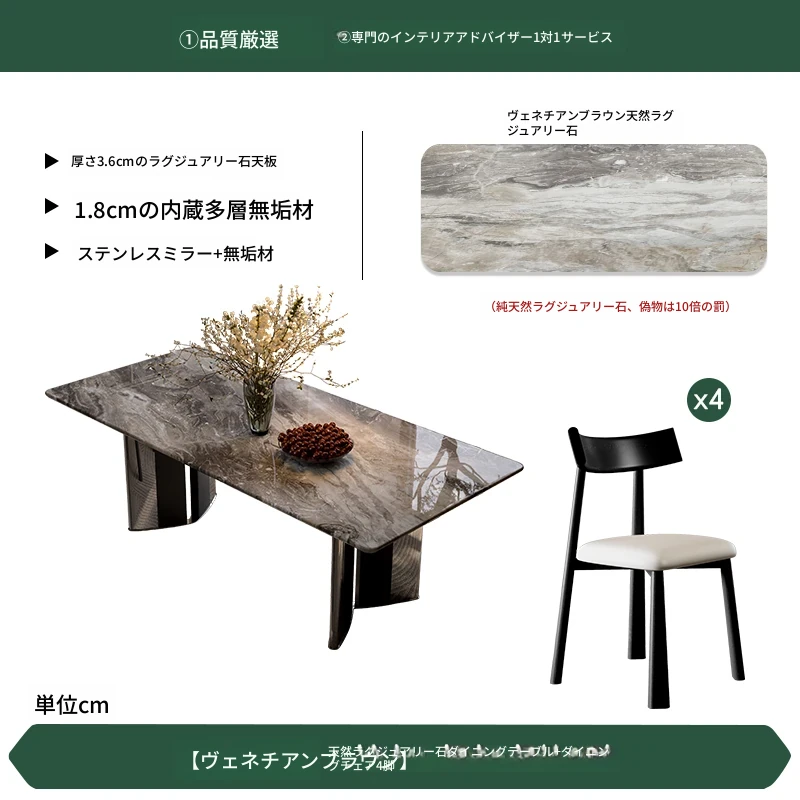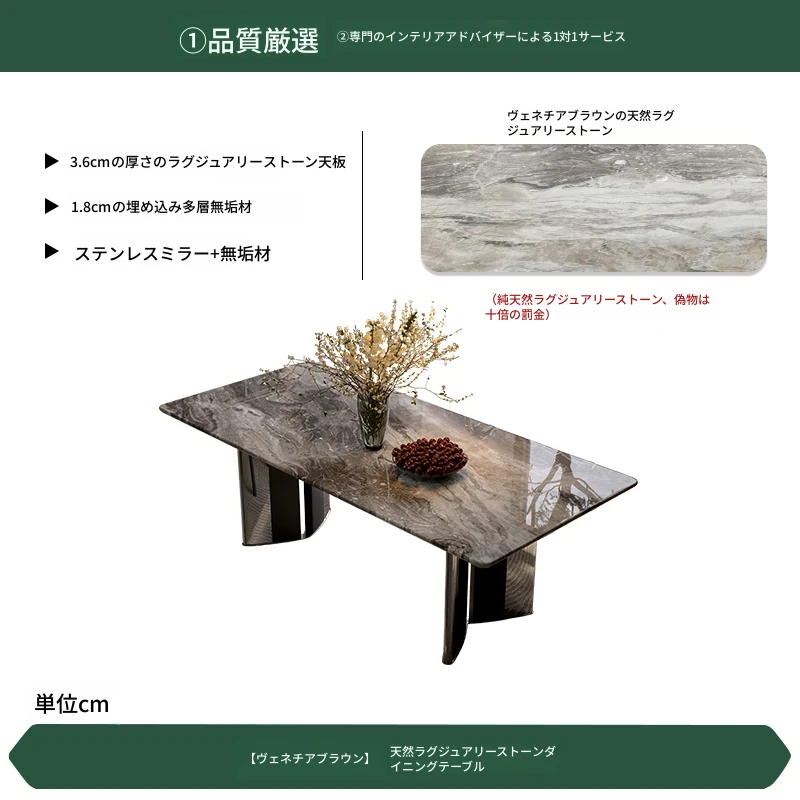 [国産ヴェネツィアブラウン]天然高級石材ダイニングテーブル(純天然高級石材、偽物は10倍の罰金)