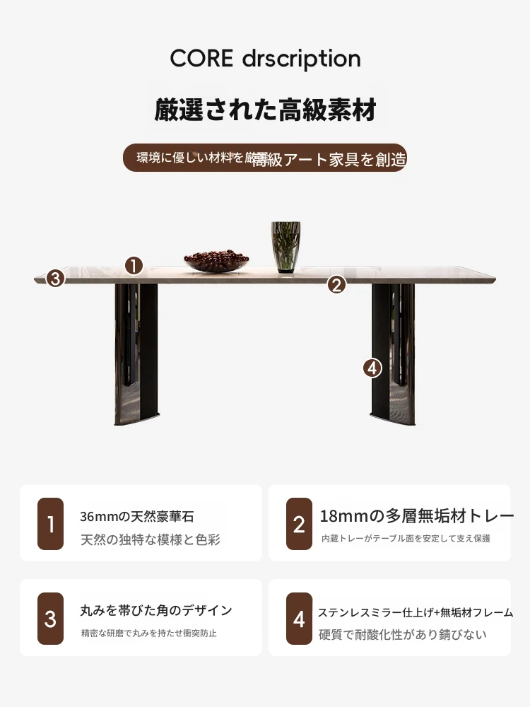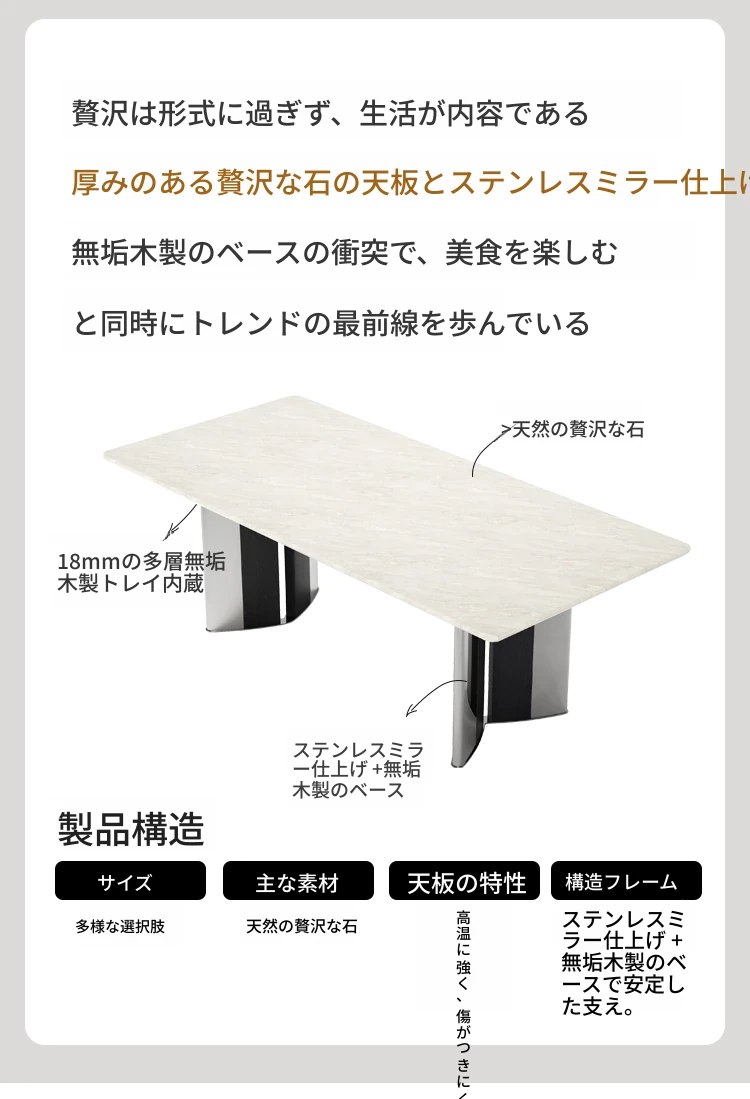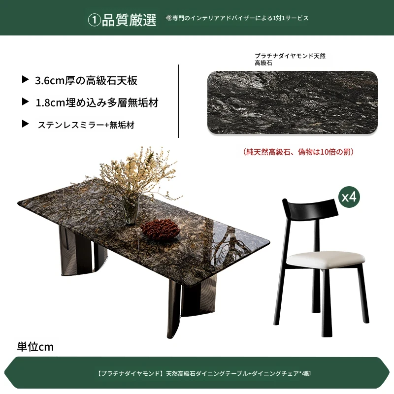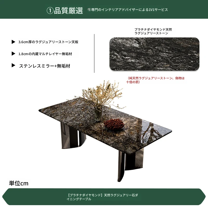[プラチナダイヤ]天然高級石材ダイニングテーブル(純天然高級石材、偽物は10倍の罰金)