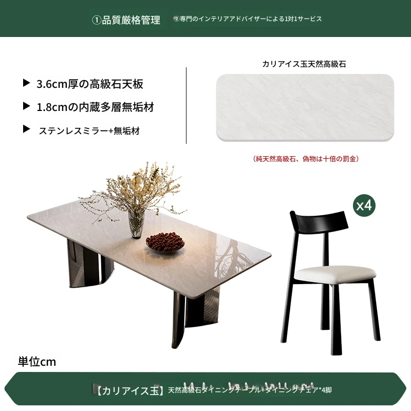 [プラチナダイヤ]天然高級石材ダイニングテーブル+チェア*4(純天然高級石材、偽物は10倍の罰金)
