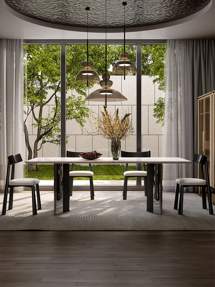[カリビアンアイスジェード]天然高級石材ダイニングテーブル+チェア*6(純天然高級石材、偽物は10倍の罰金)