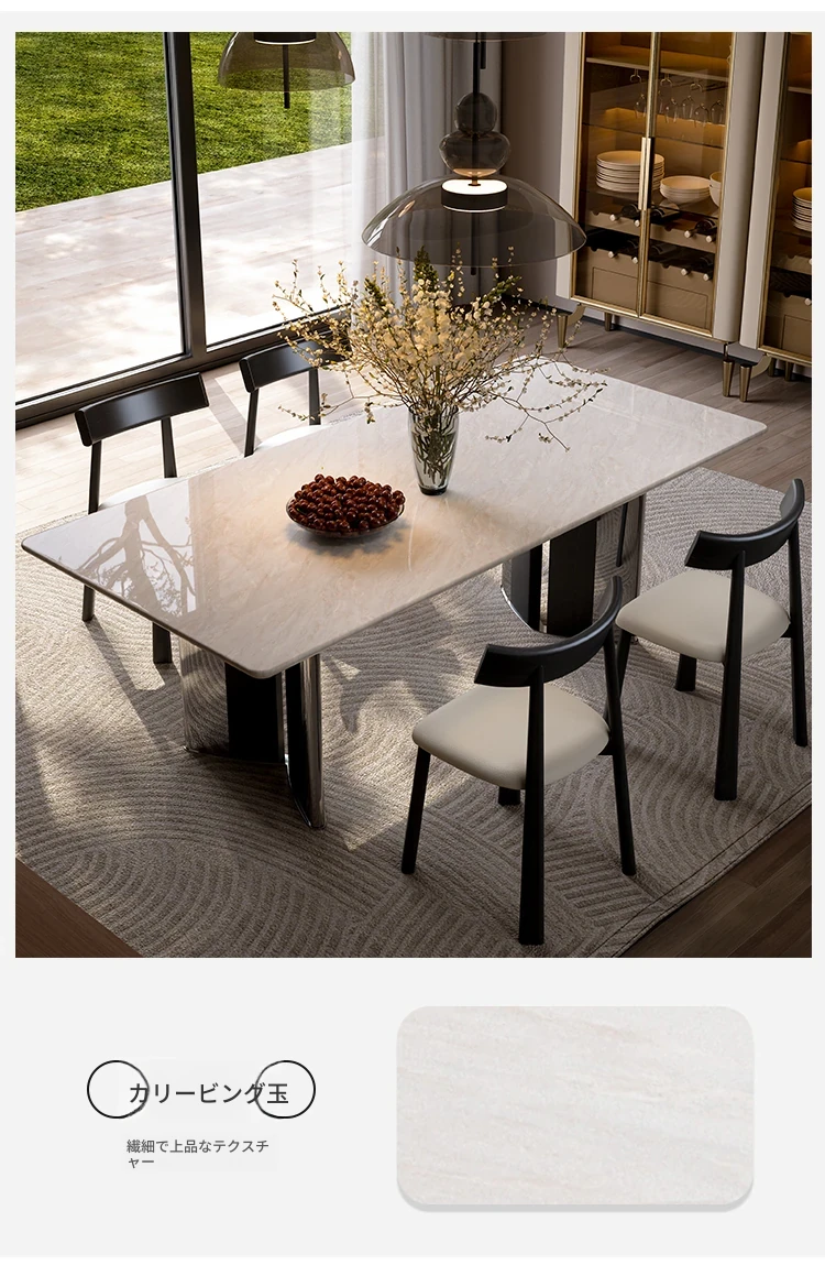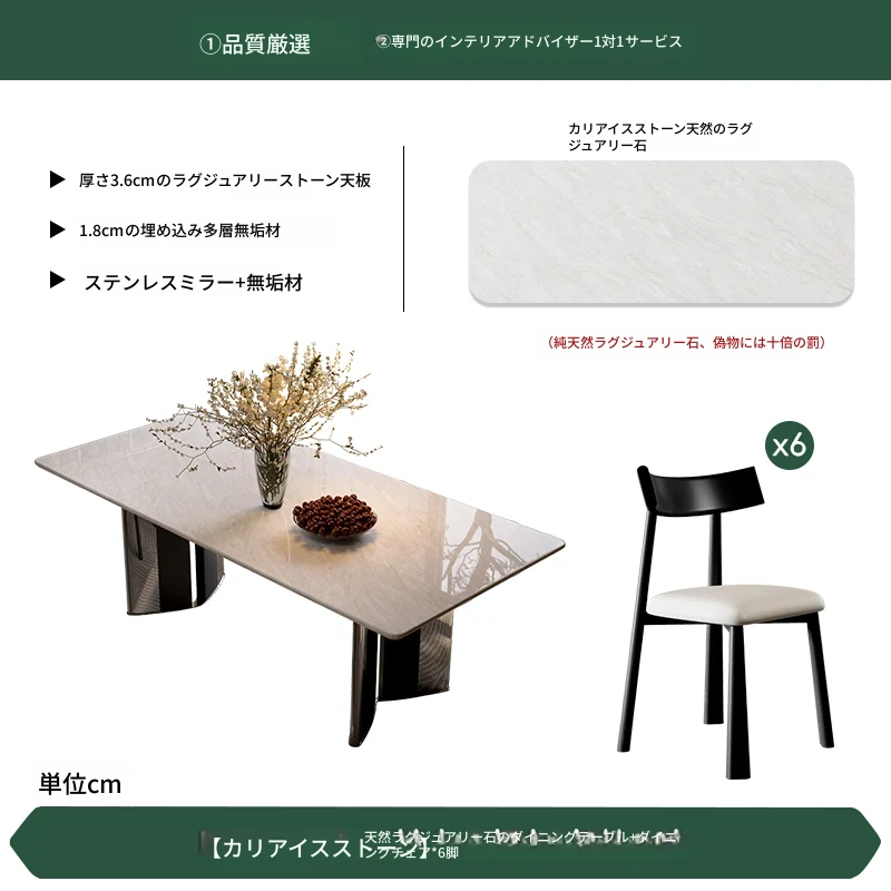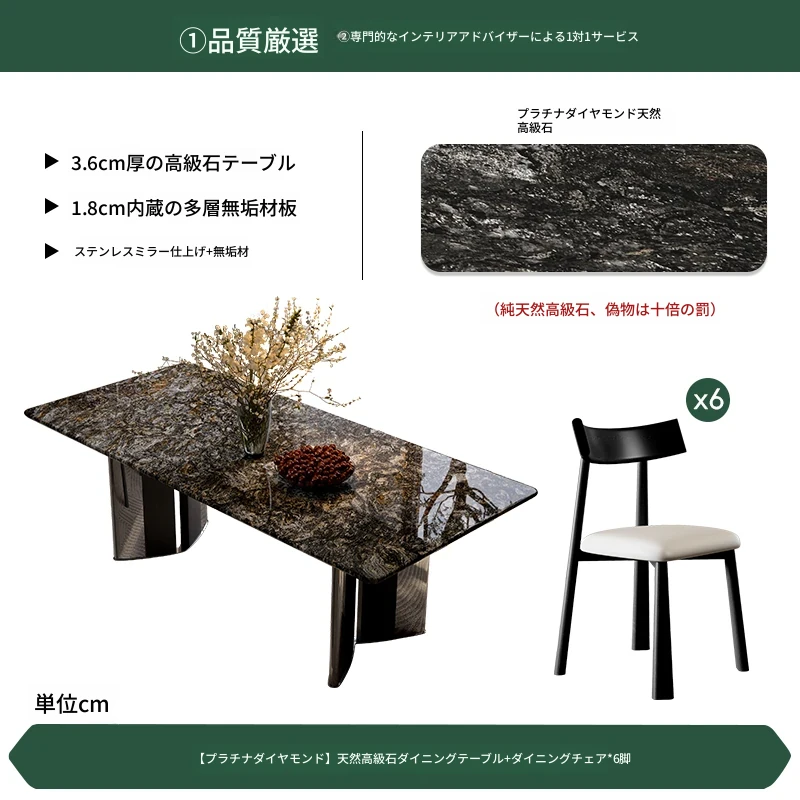 [プラチナダイヤ]天然高級石材ダイニングテーブル+チェア*6(純天然高級石材、偽物は10倍の罰金)