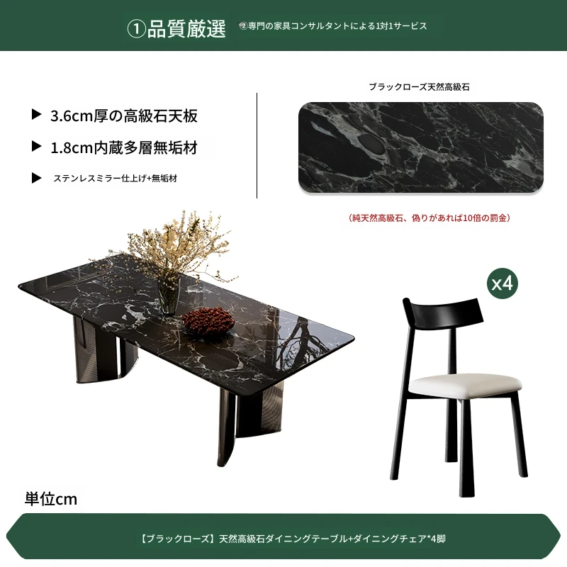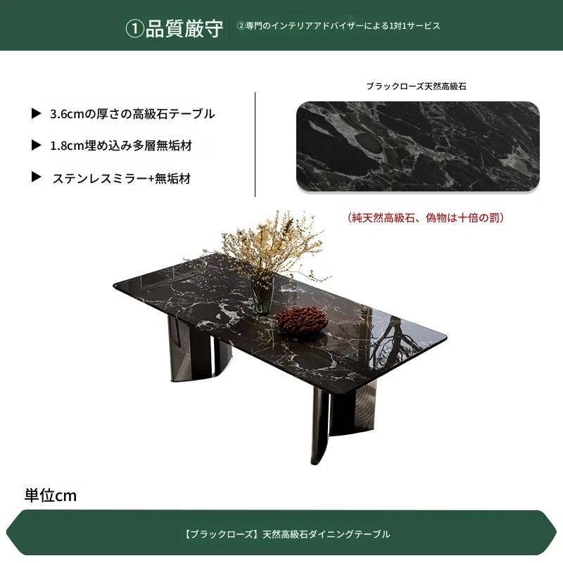 [ブラックローズ]天然高級石材ダイニングテーブル(純天然高級石材、偽物は10倍の罰金)