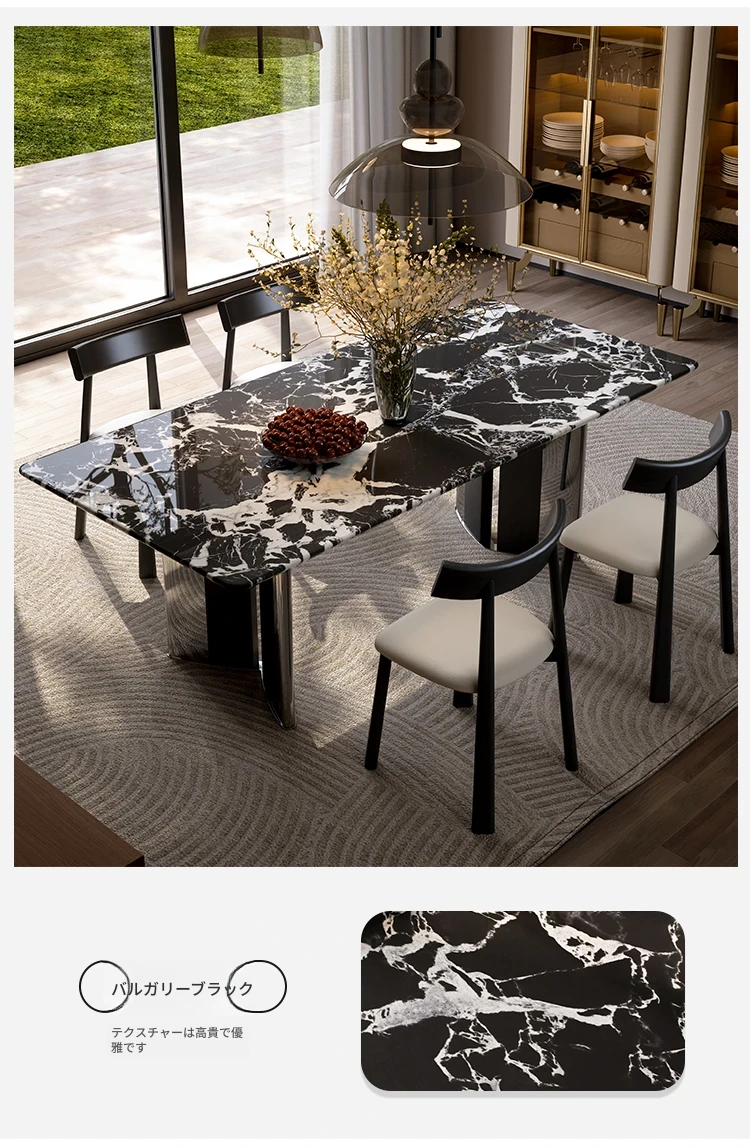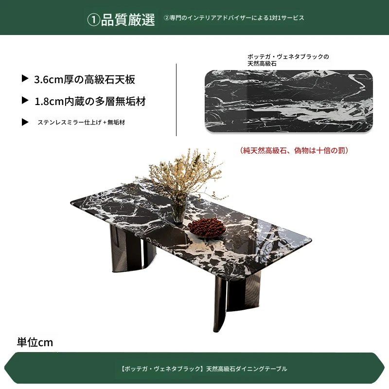 [ブルガリブラック]天然高級石材ダイニングテーブル(純天然高級石材、偽物は10倍の罰金)