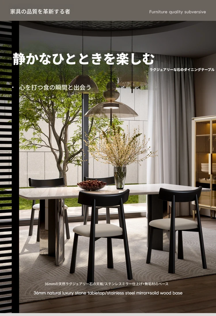 [ブラックローズ]天然高級石材ダイニングテーブル+チェア*6(純天然高級石材、偽物は10倍の罰金)