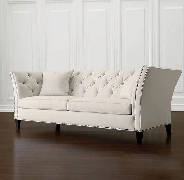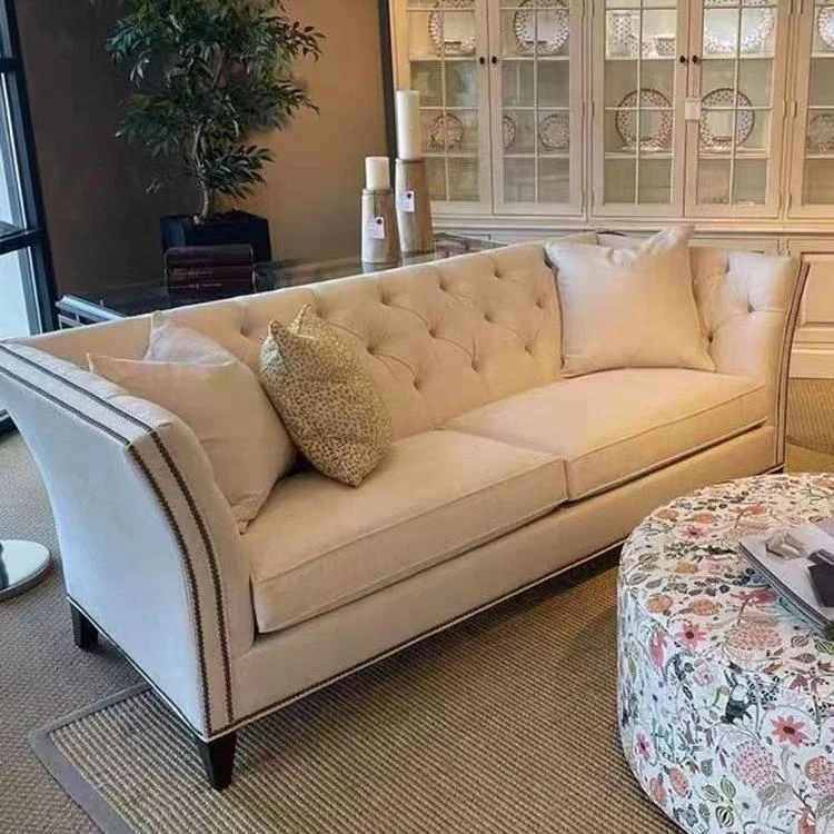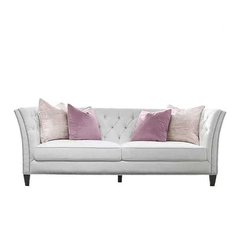 アメリカンスタイルの軽奢華レザーソファ!モダンでシンプル、小さなリビングにぴったりなコンパクトソファ。快適なクッションとスタイリッシュなデザインで、あなたの空間をグレードアップ!