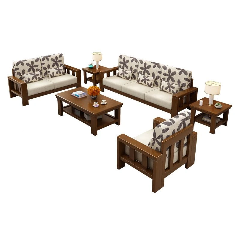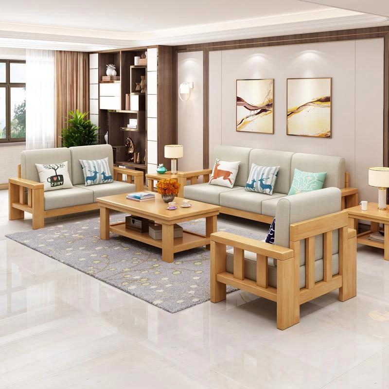 中式ミニマリストデザインの木製ソファセット - 現代的なリビングルームにぴったりなLY805ファブリックソファ、コンパクトなスペースにも最適!高品質な家具でおしゃれな空間を演出します。