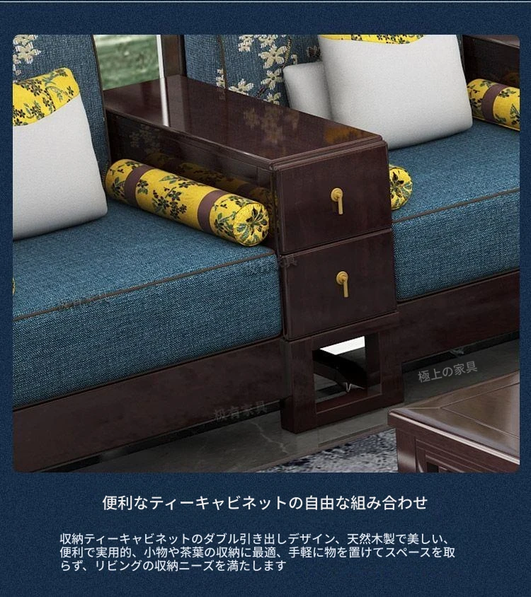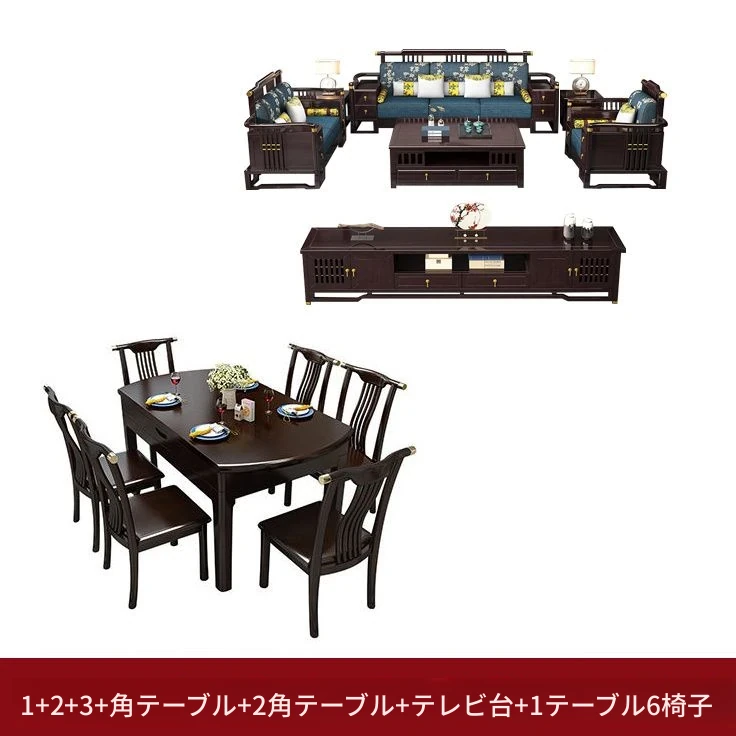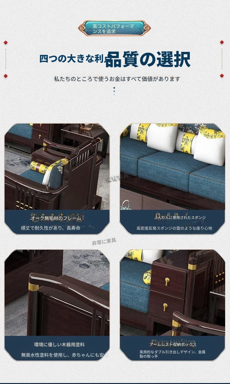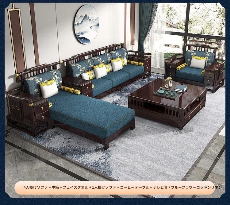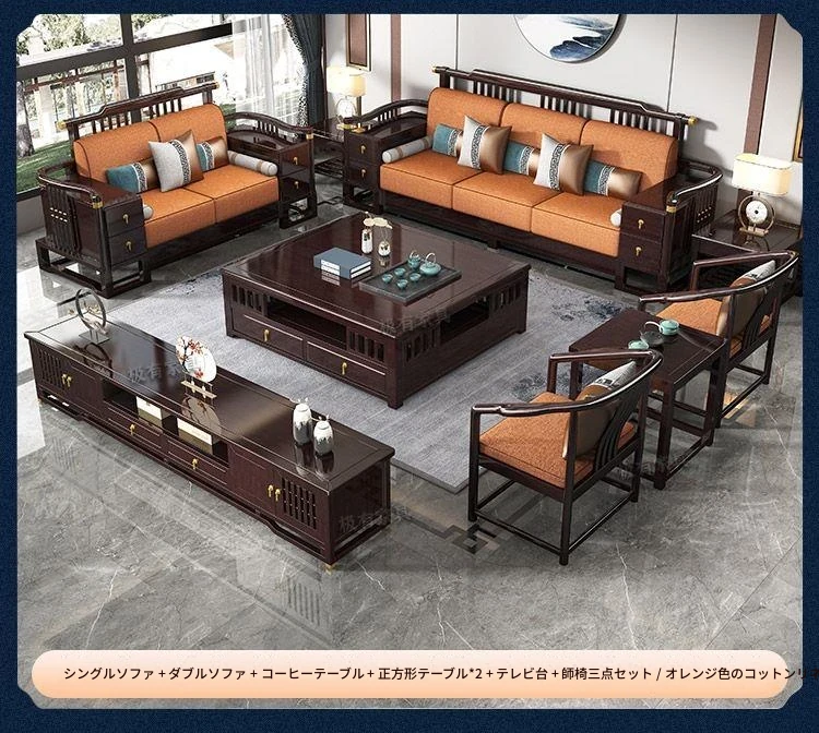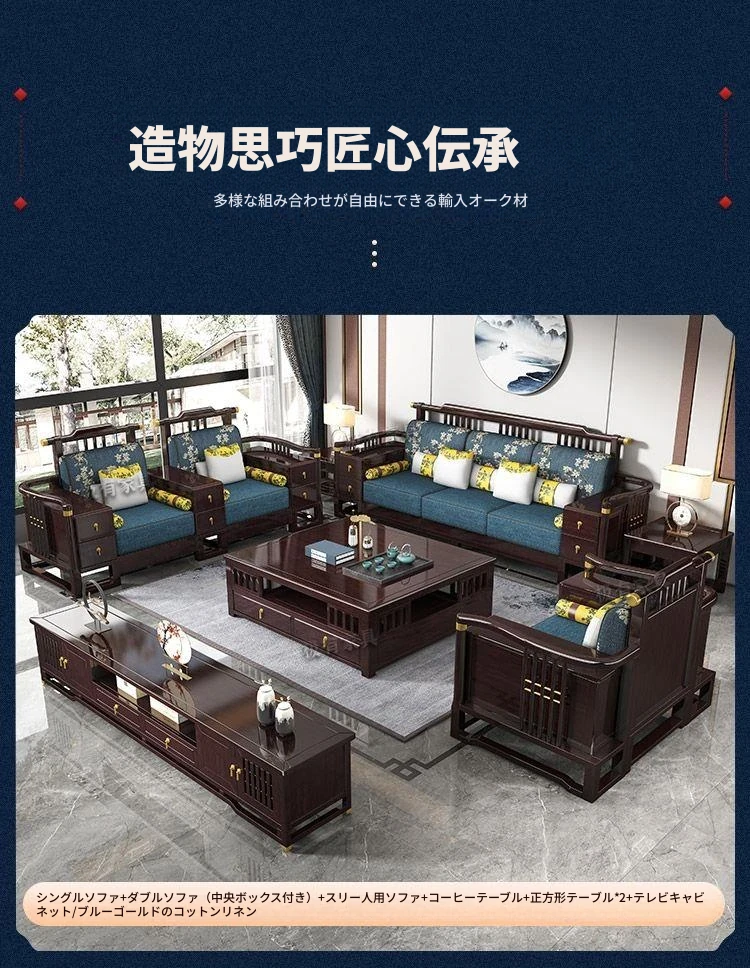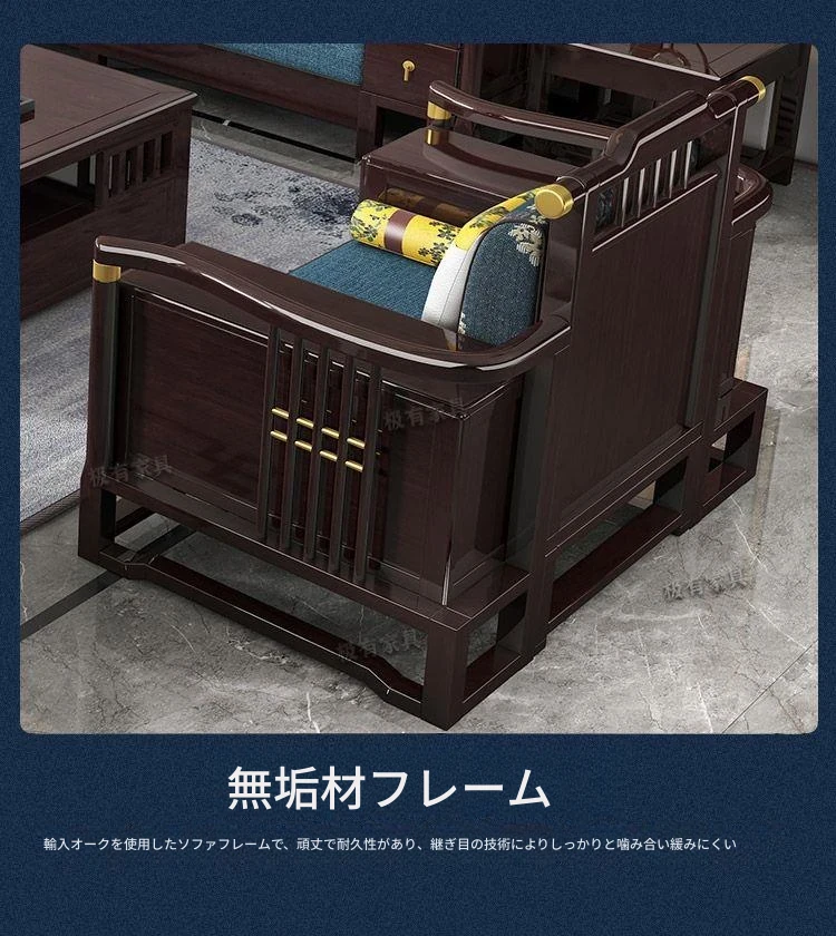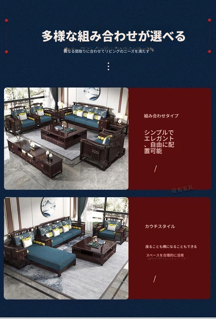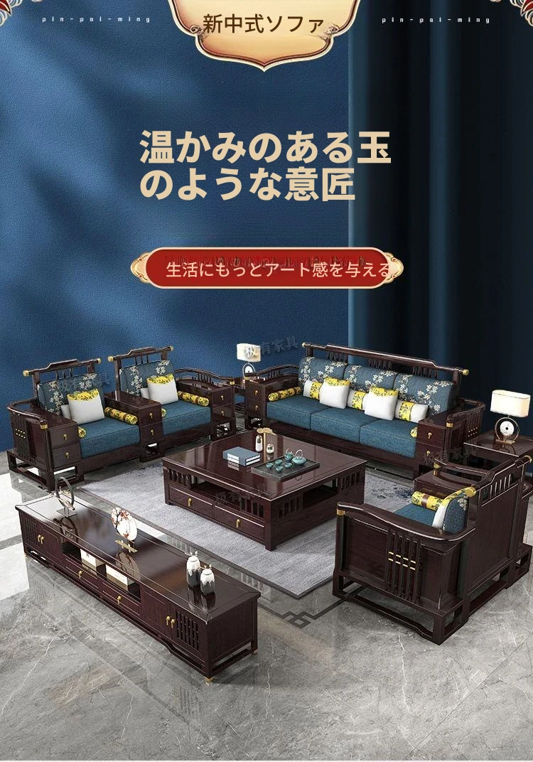 新中式スタイルの無垢材ソファセット - 大型リビングに最適!禅の雰囲気を醸し出す軽やかなラグジュアリー、中国風の現代的でシンプルな家具で、心地よい空間を演出します。