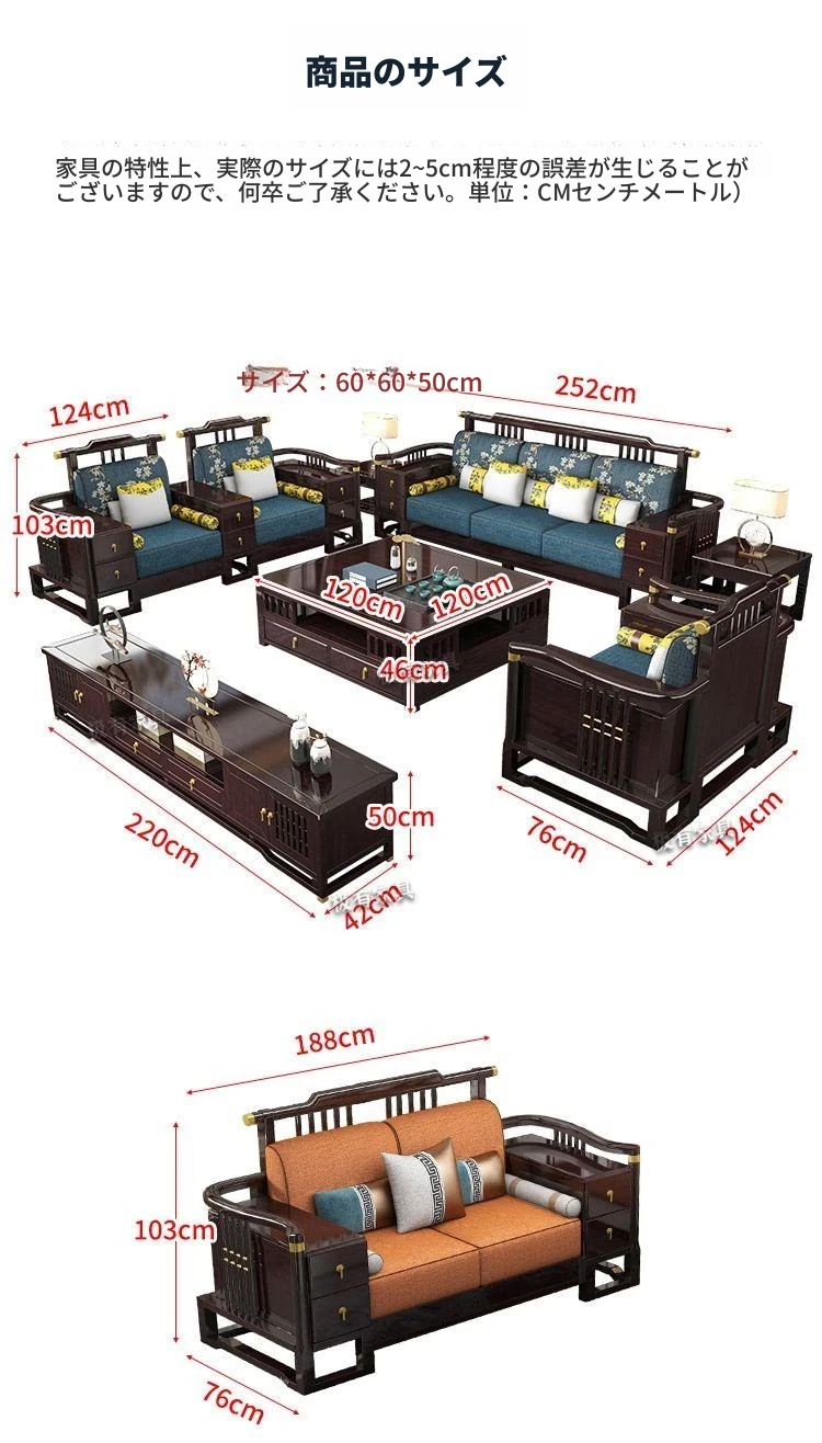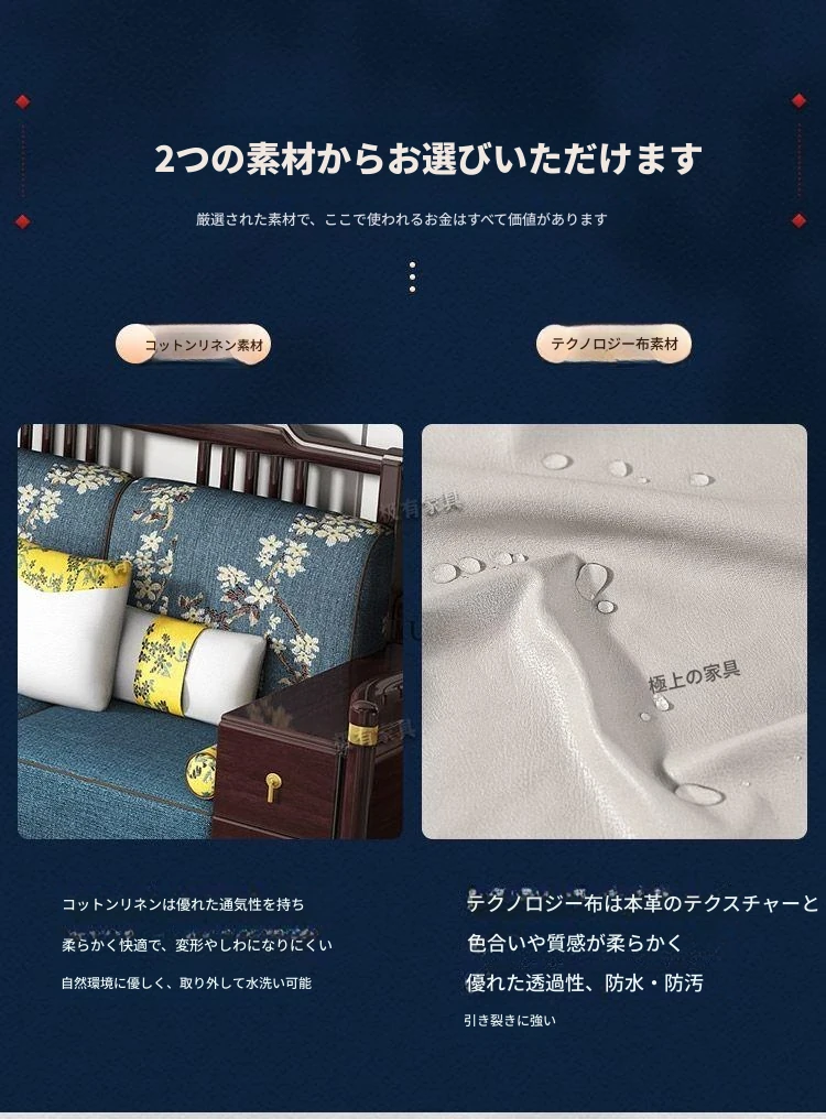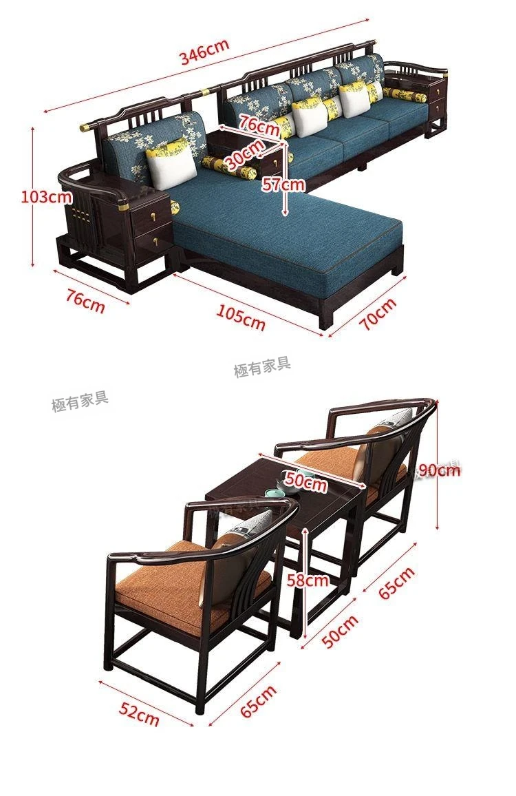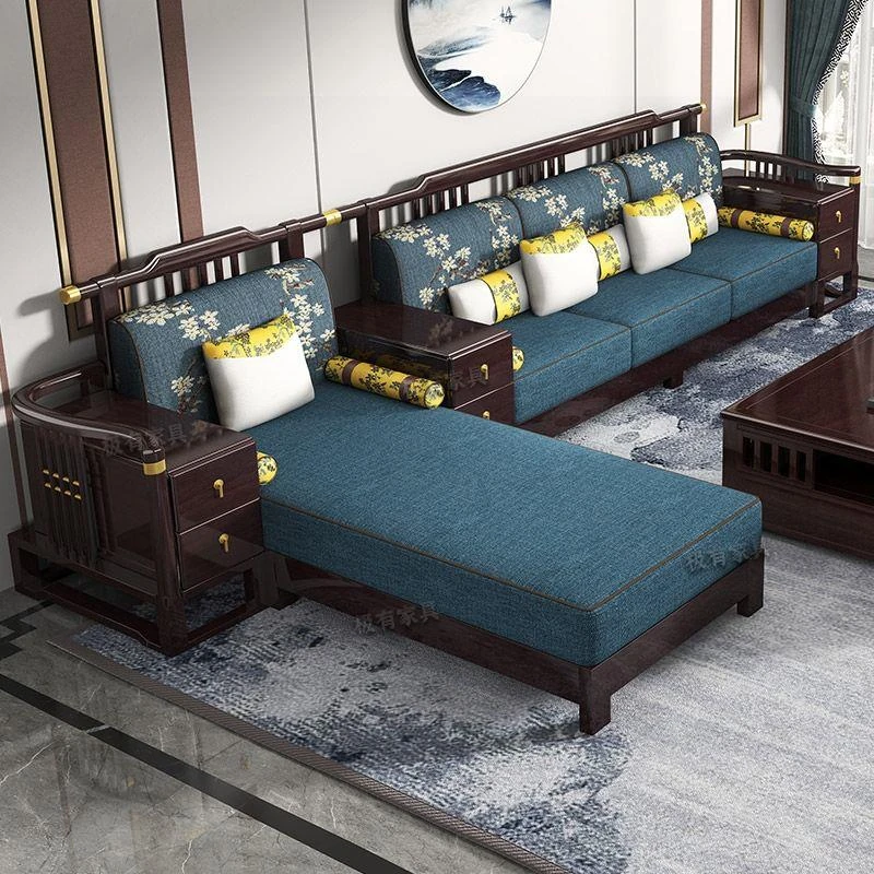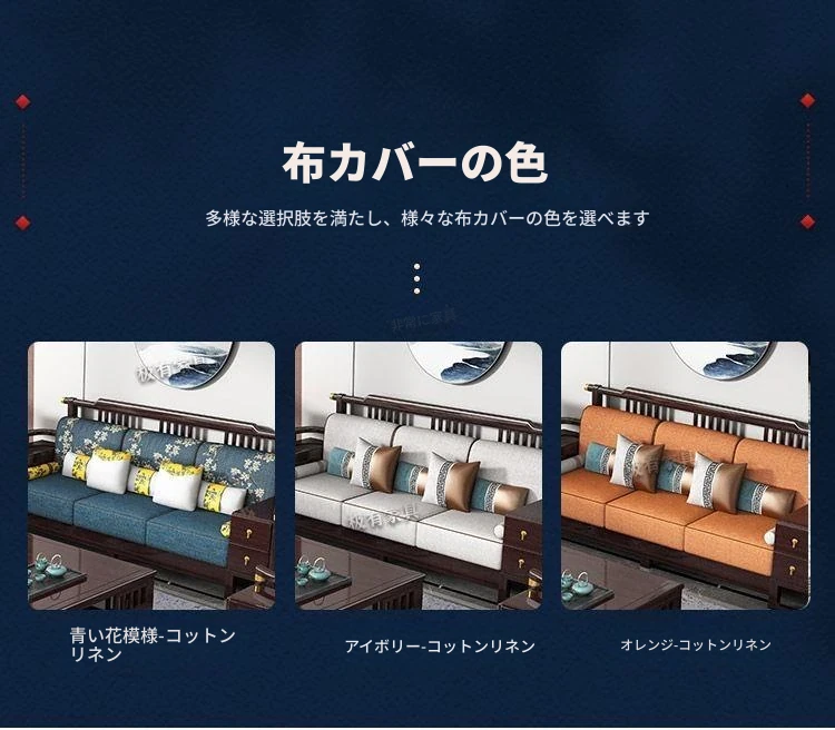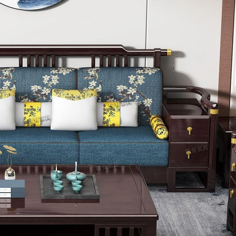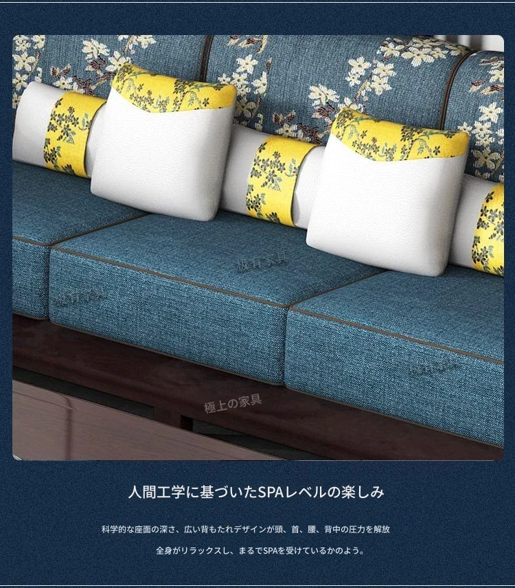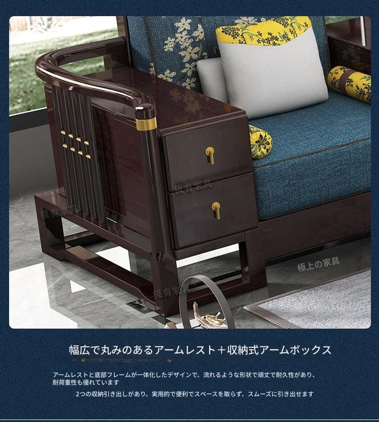 新中式スタイルの無垢材ソファセット - 大型リビングに最適!禅の雰囲気を醸し出す軽やかなラグジュアリー、中国風の現代的でシンプルな家具で、心地よい空間を演出します。