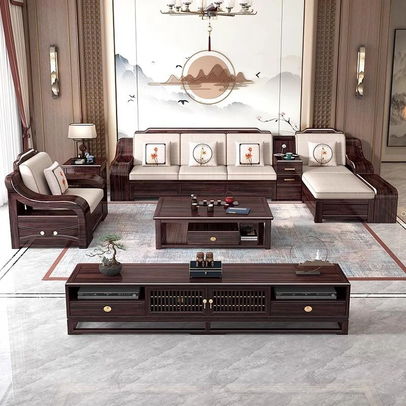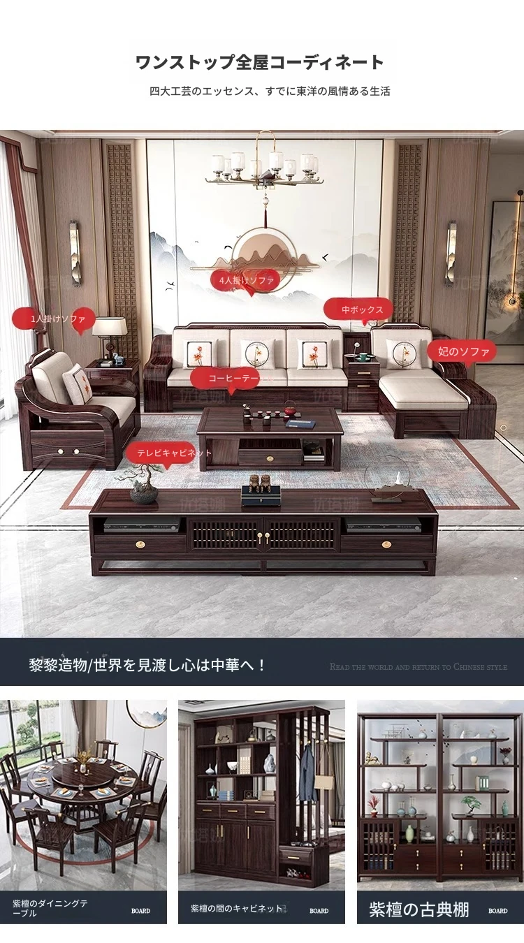 【紫金檀木】4人用ソファ+貴妃床+ テーブル+ テレビ台