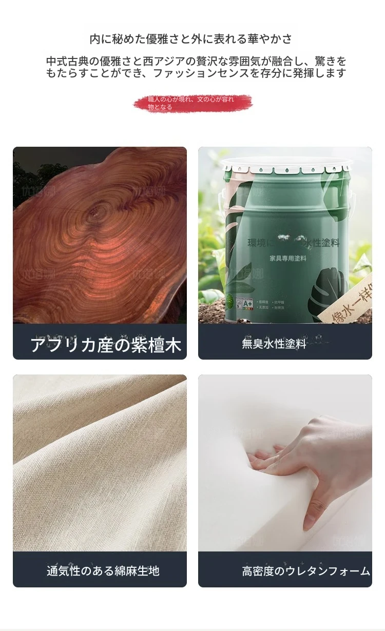 【紫金檀木】独立した4人用ソファ