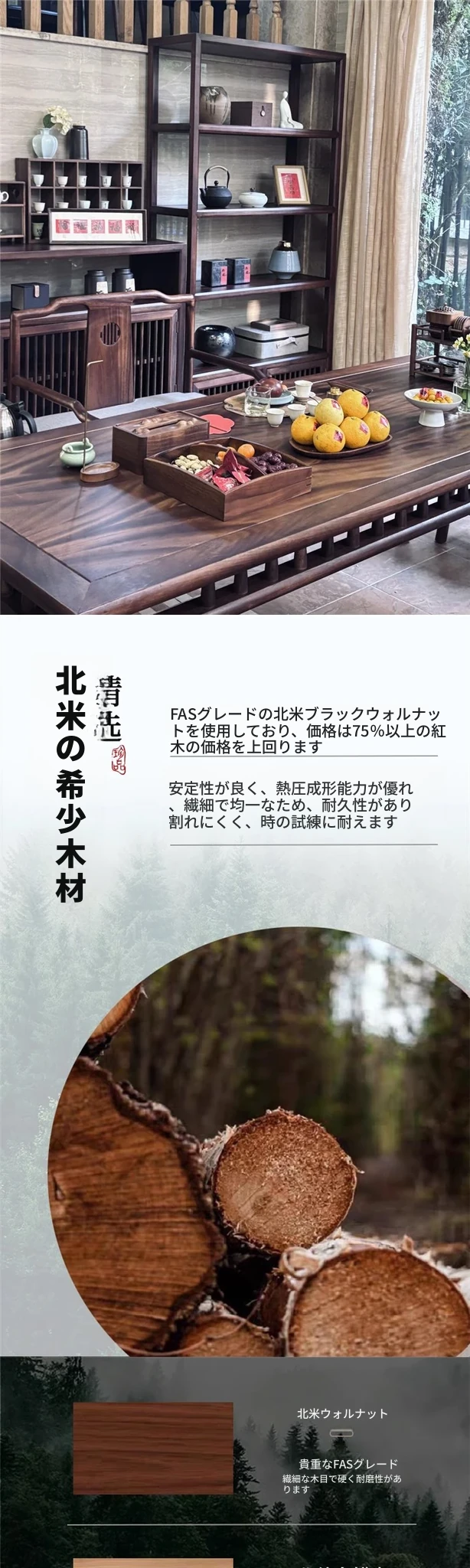 2.2メートルティーテーブル(ブラックウォルナット)