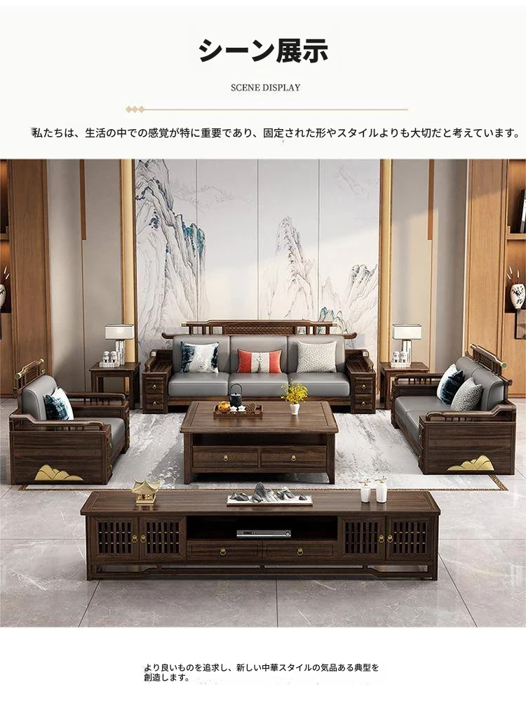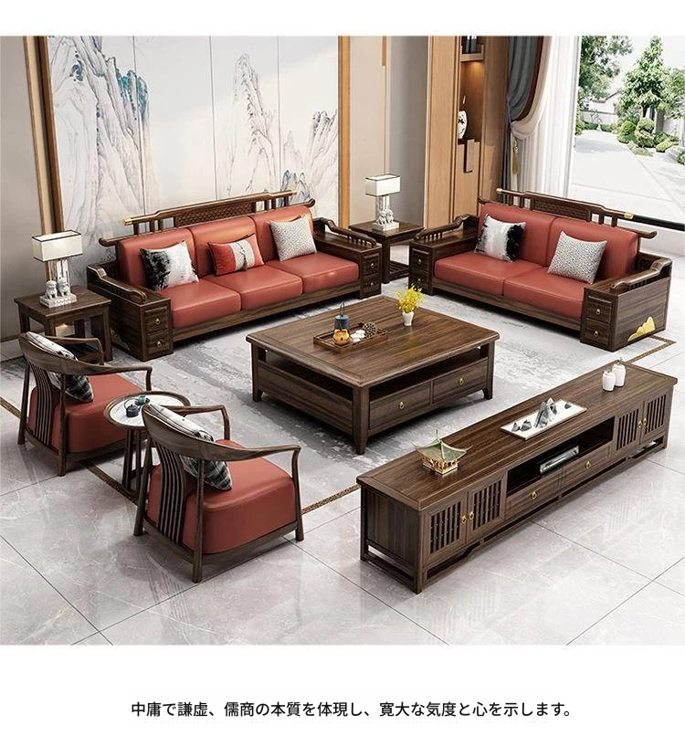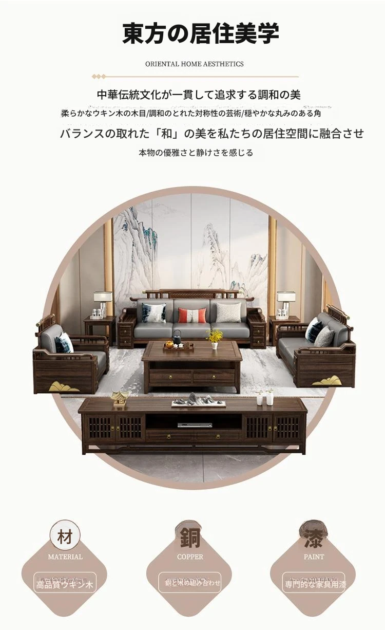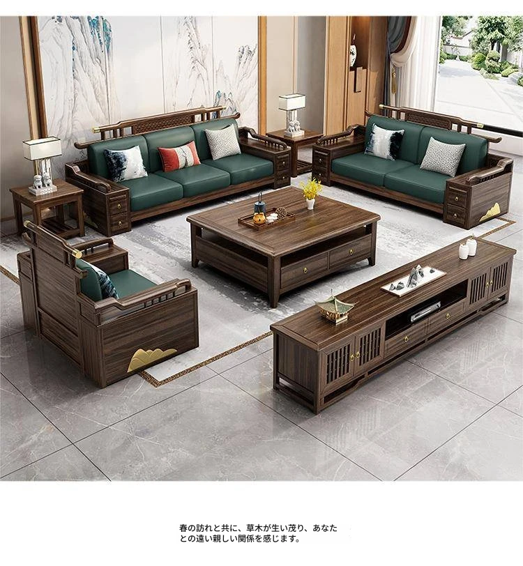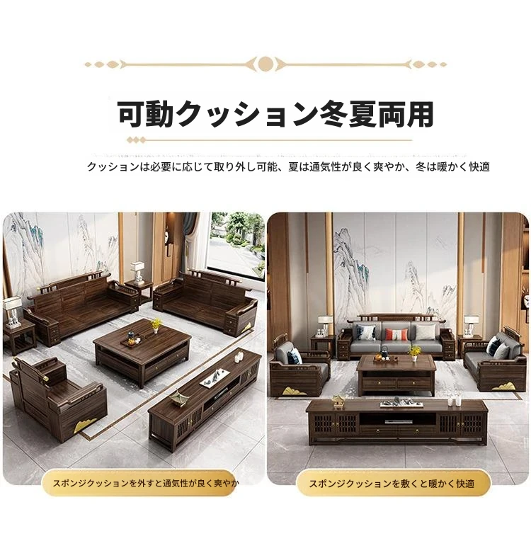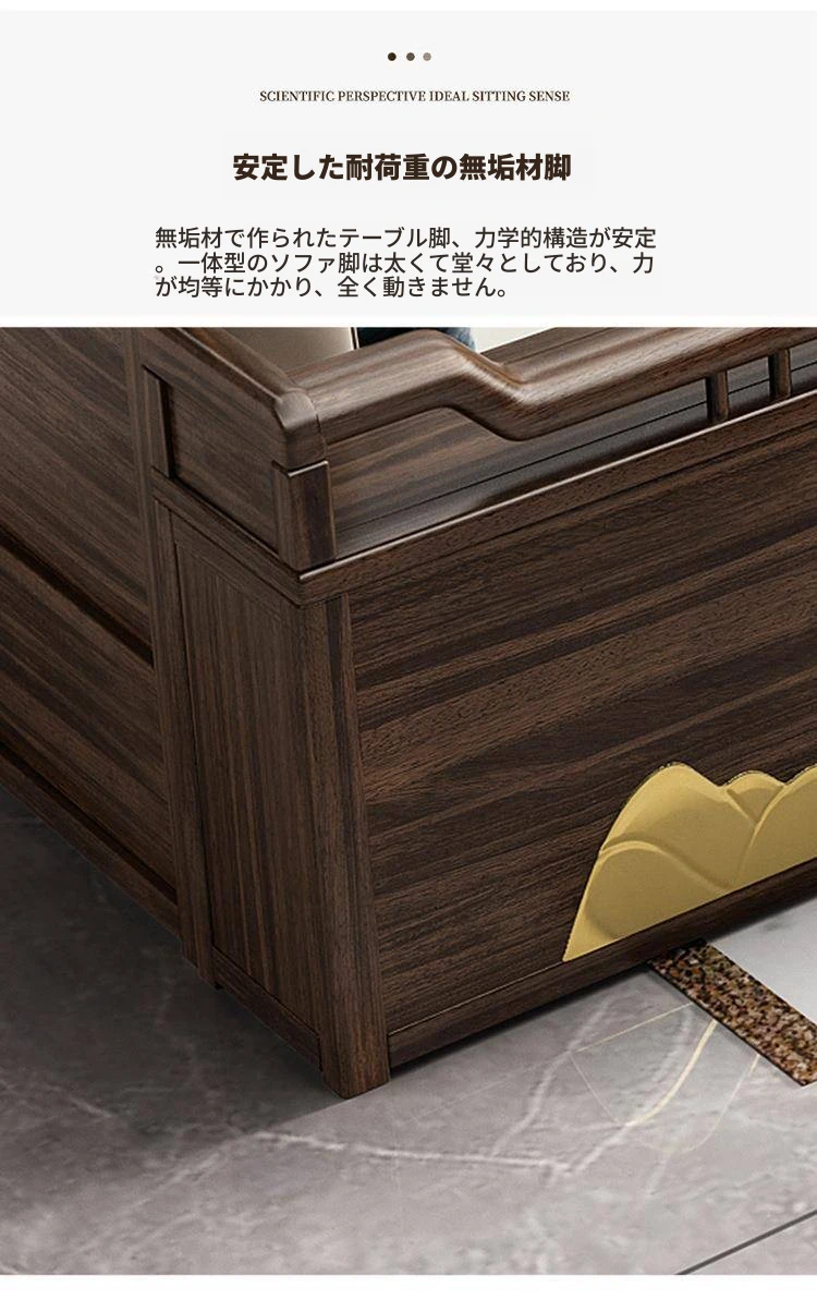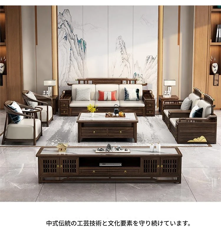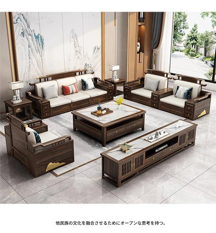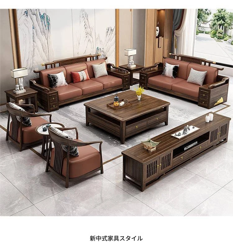 新中式ウッド調ウッディソファセット|モダンなデザインで大小様々な住宅に最適|高級感溢れるウッディな仕上げで、別荘や全室コーディネートも可能!