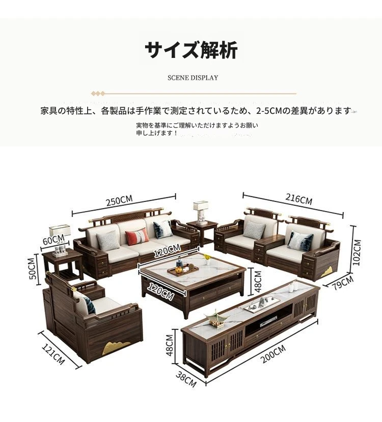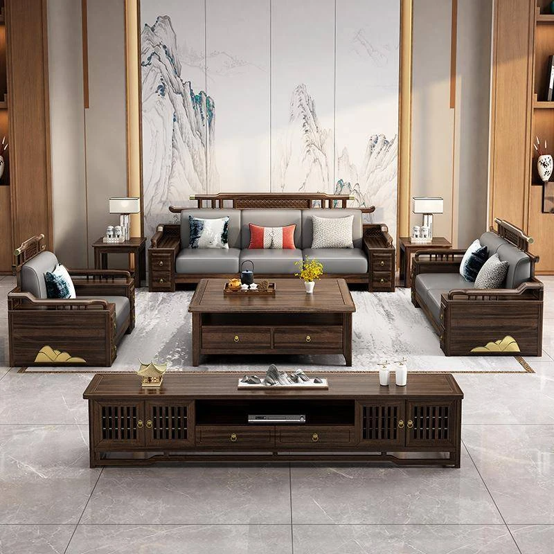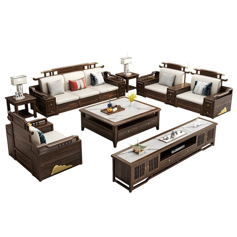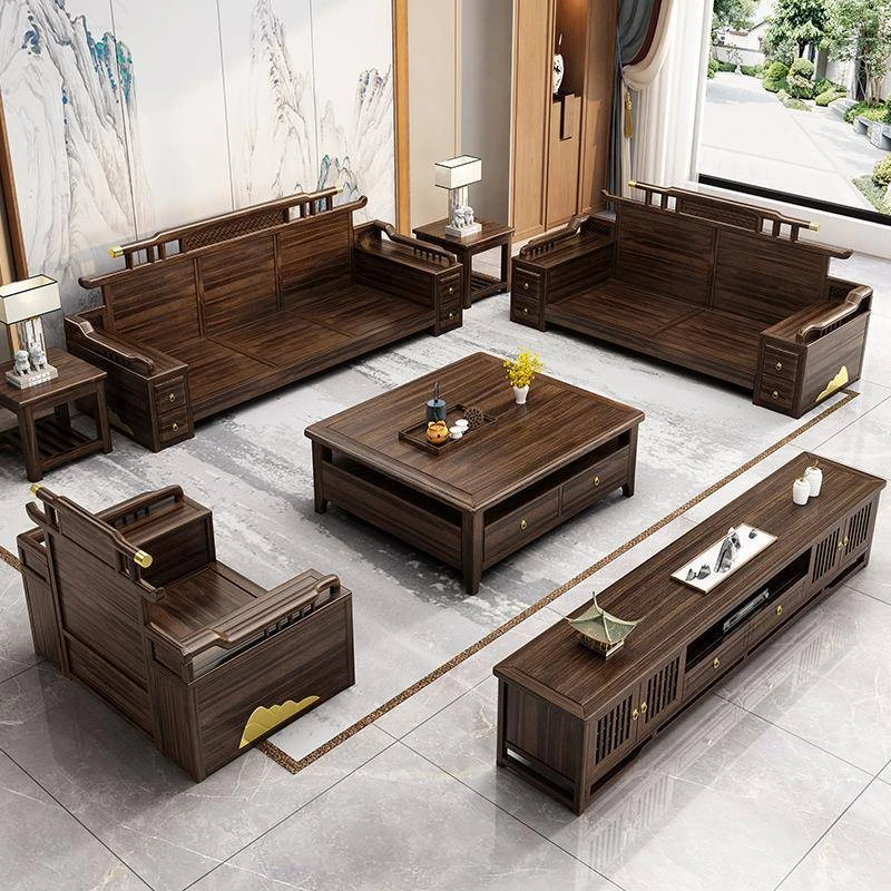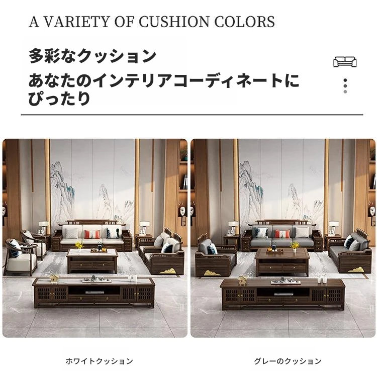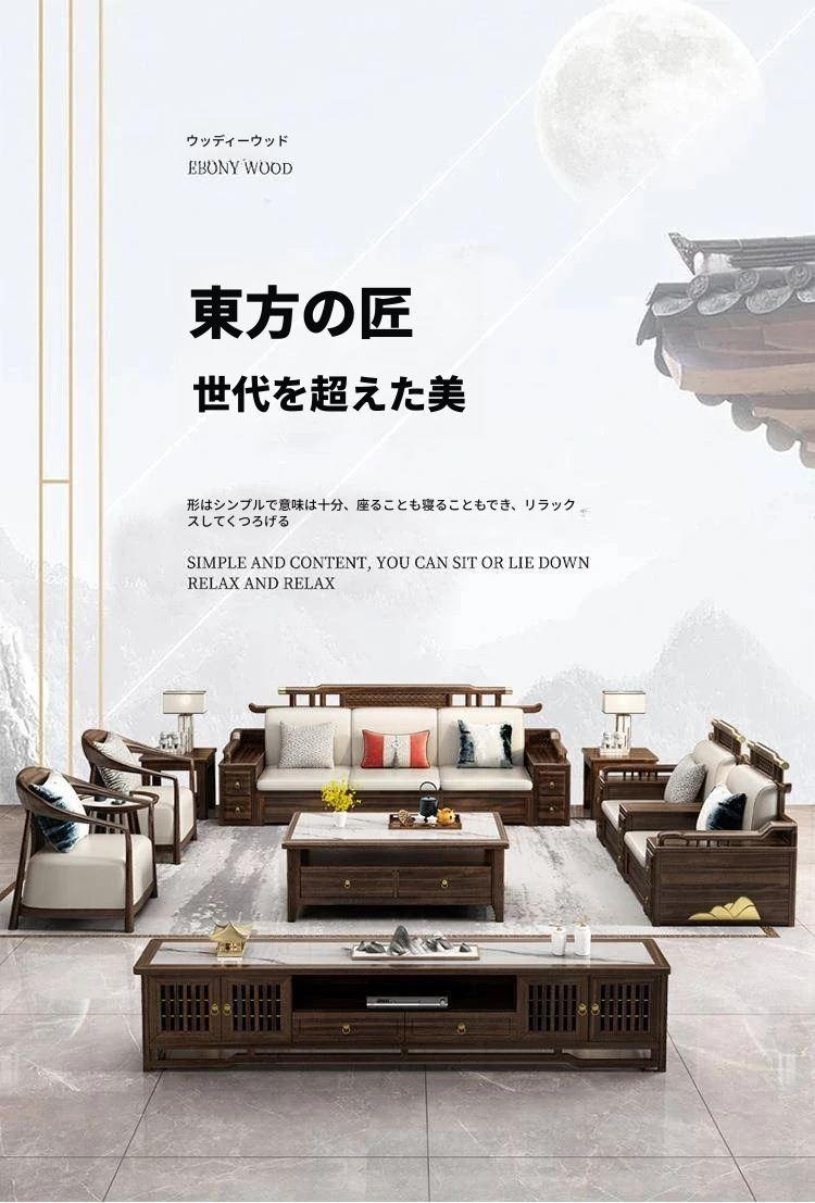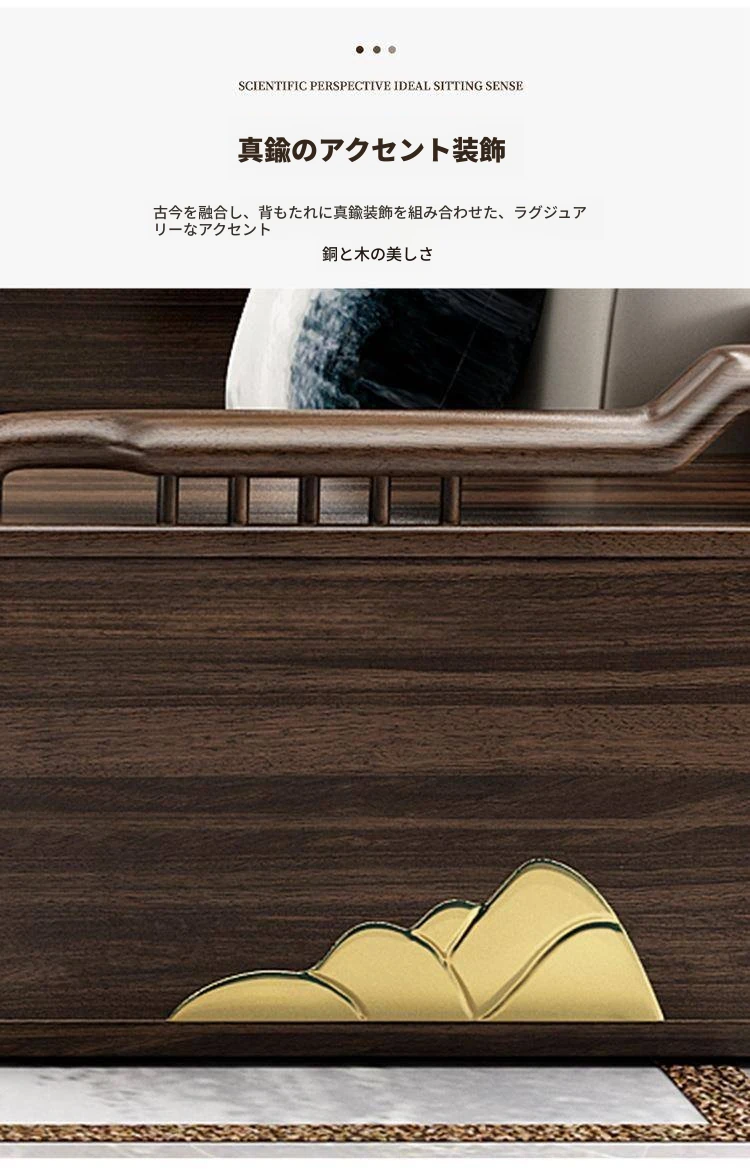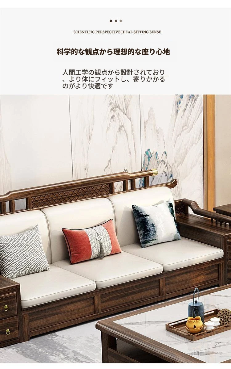 新中式ウッド調ウッディソファセット|モダンなデザインで大小様々な住宅に最適|高級感溢れるウッディな仕上げで、別荘や全室コーディネートも可能!