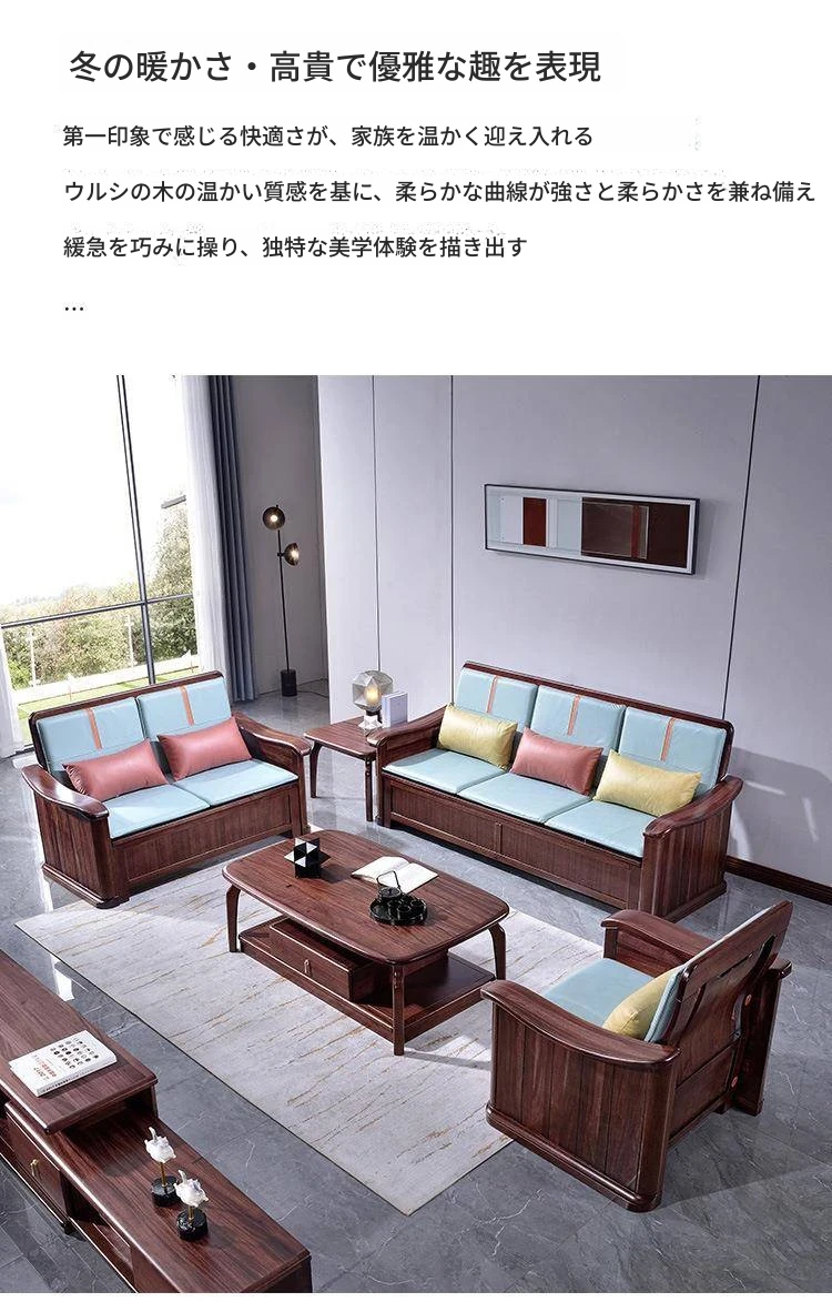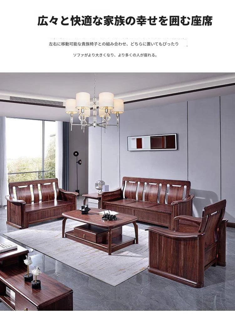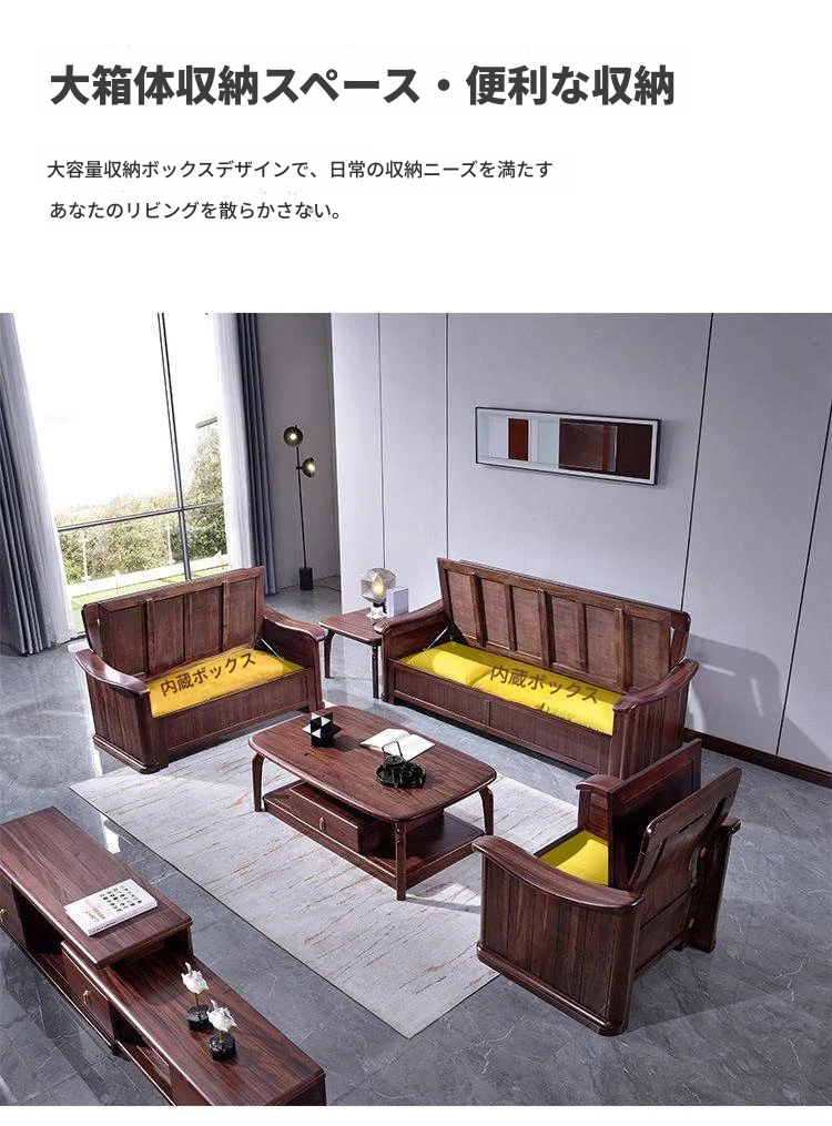 ウーゴン木製ソファセット|モダン中華スタイル|小型住宅に最適|夏冬両用&収納機能付き|快適なリビング空間を実現!