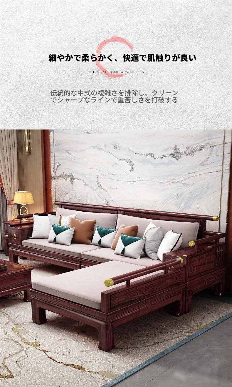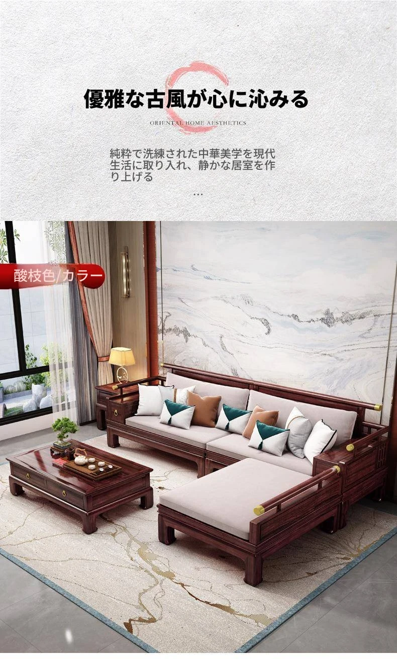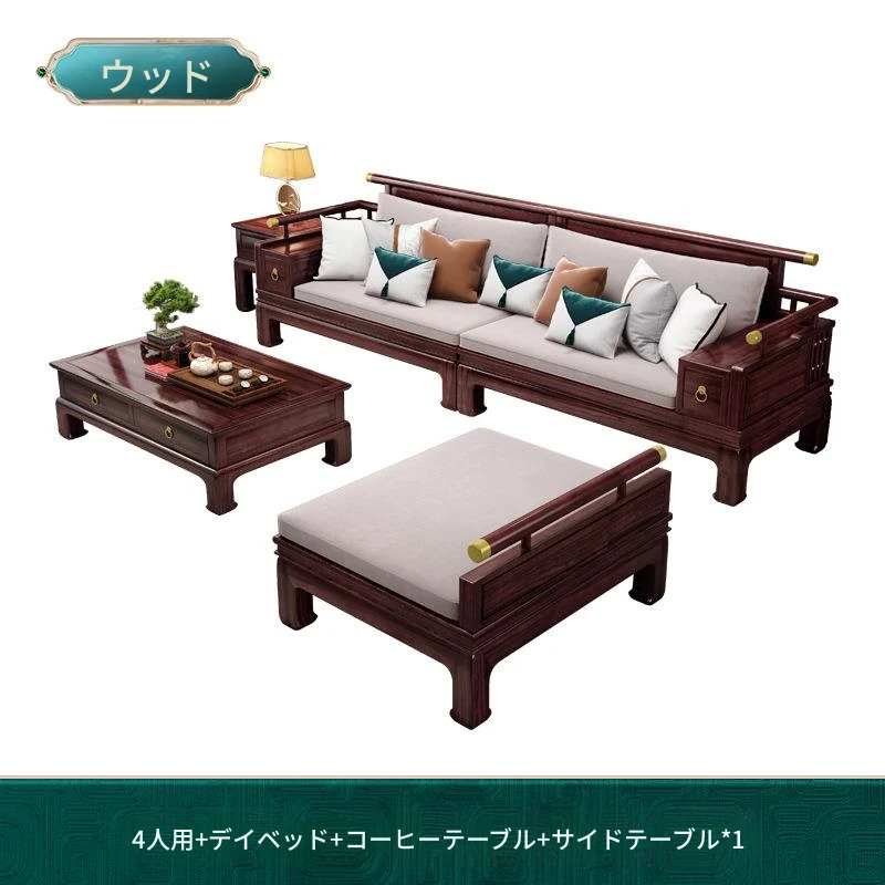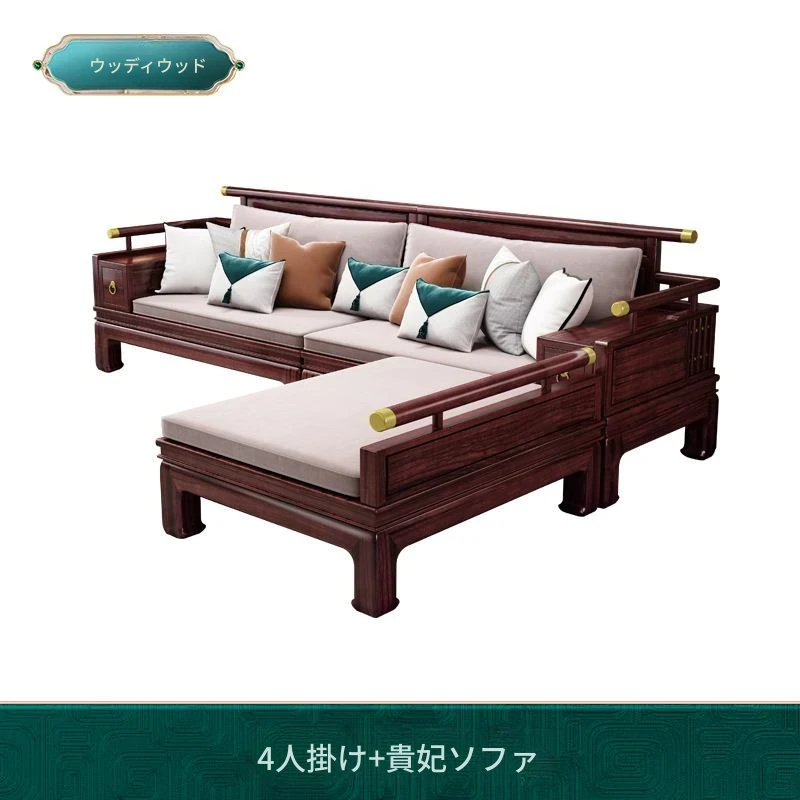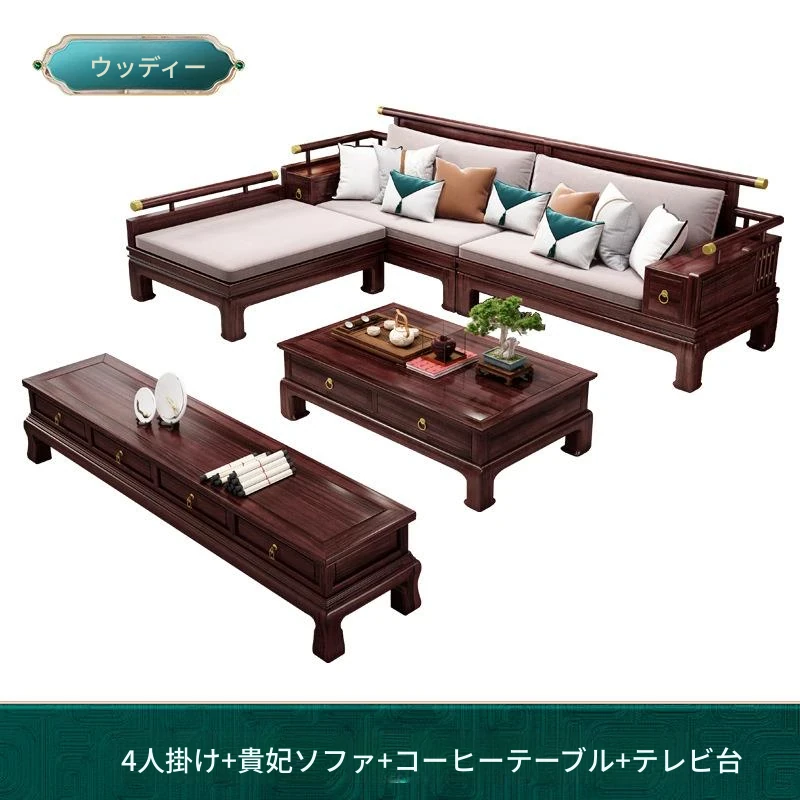 新中式ウッドソファー&ウーキンウッドの貴妃椅子付きコーナー&テーブルセット - モダンな小型住宅に最適なリビング全セット!高級感溢れるデザインで、くつろぎの空間を演出します。
