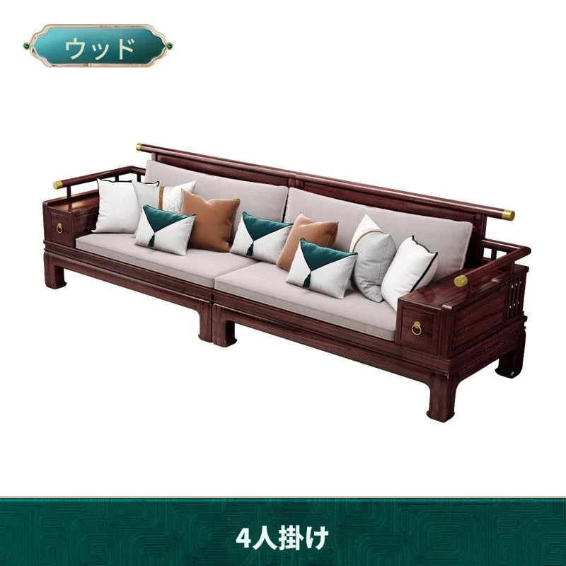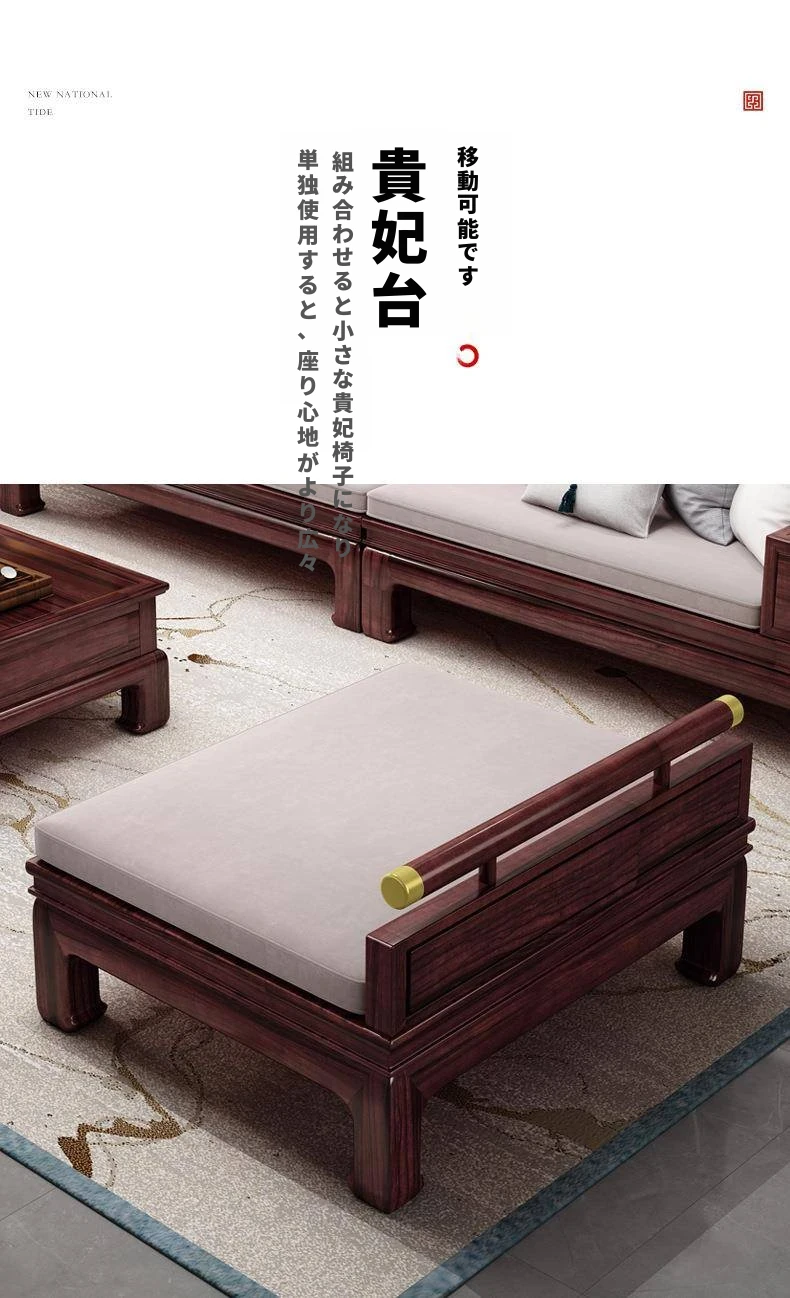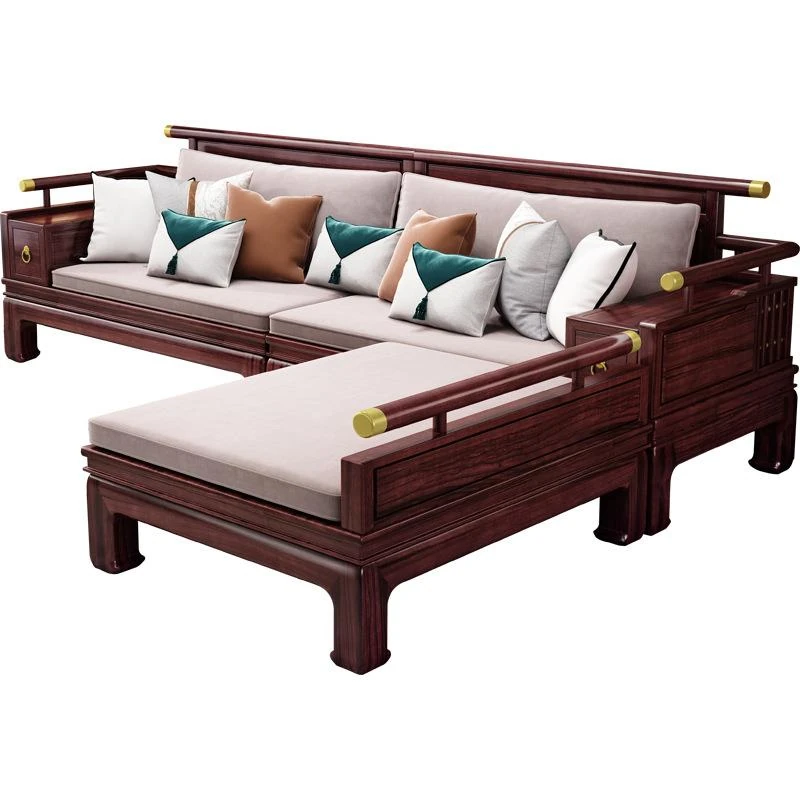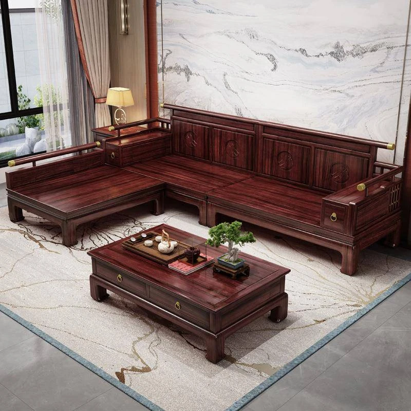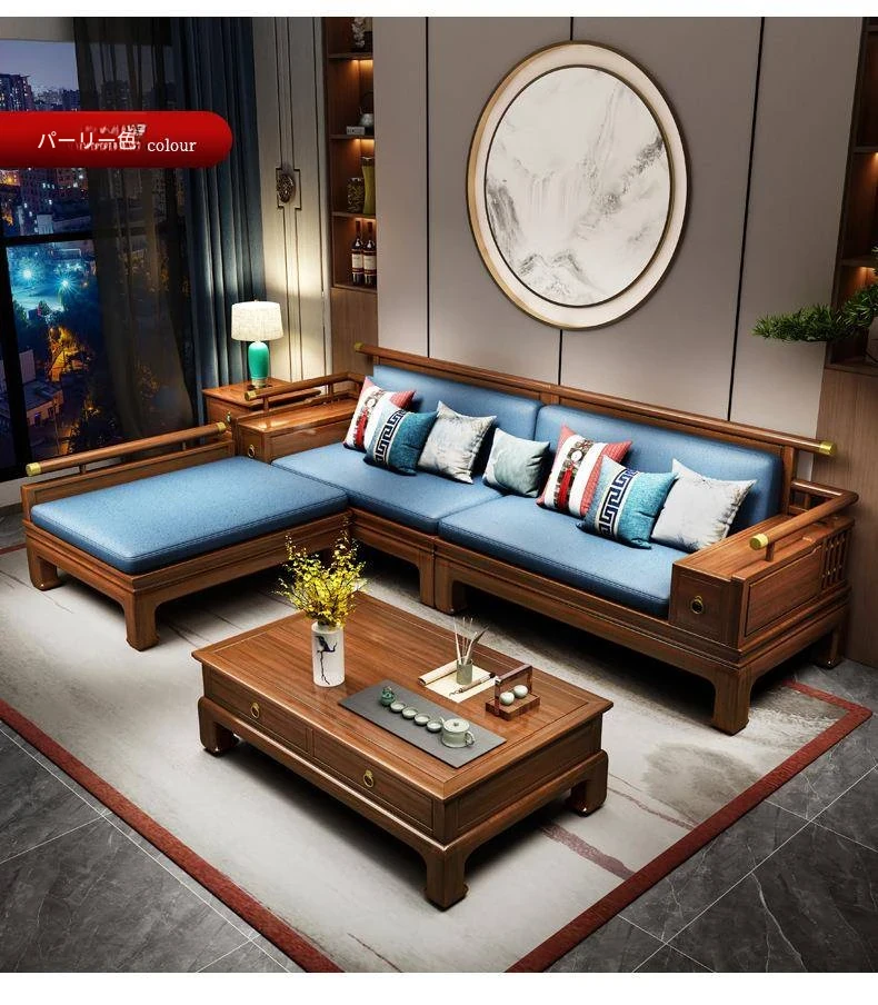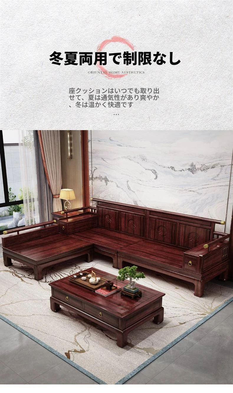 新中式ウッドソファー&ウーキンウッドの貴妃椅子付きコーナー&テーブルセット - モダンな小型住宅に最適なリビング全セット!高級感溢れるデザインで、くつろぎの空間を演出します。